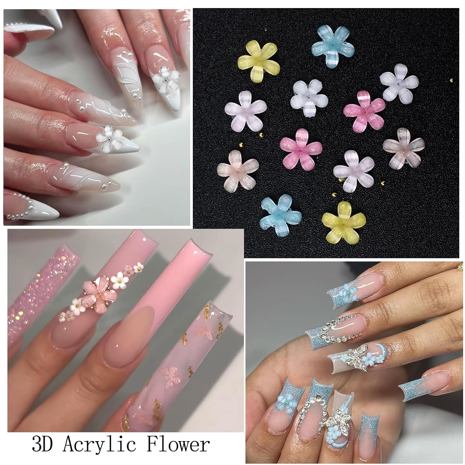 - 【3D Flowers for Nails】There is pink ,yellow,purple,blue,orange and hot pink small acrylic flowers for nail decoration. Besides,there is also nail pearls and caviar gold beads for different nail decoration combination.
