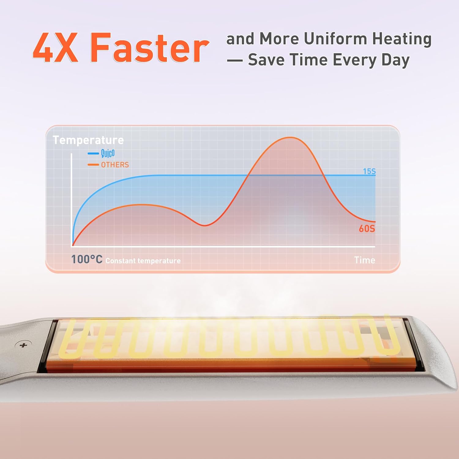 - 【15-Second Fast Heating for Perfect Styles】Quico hair straightener features advanced PTC heating technology, quickly reaching the ideal temperature in just 15 seconds and providing even, consistent heat to gently care for your hair. The floating plates glide smoothly through your hair, effortlessly creating a flawless style from root to tip, transforming your look in an instant
