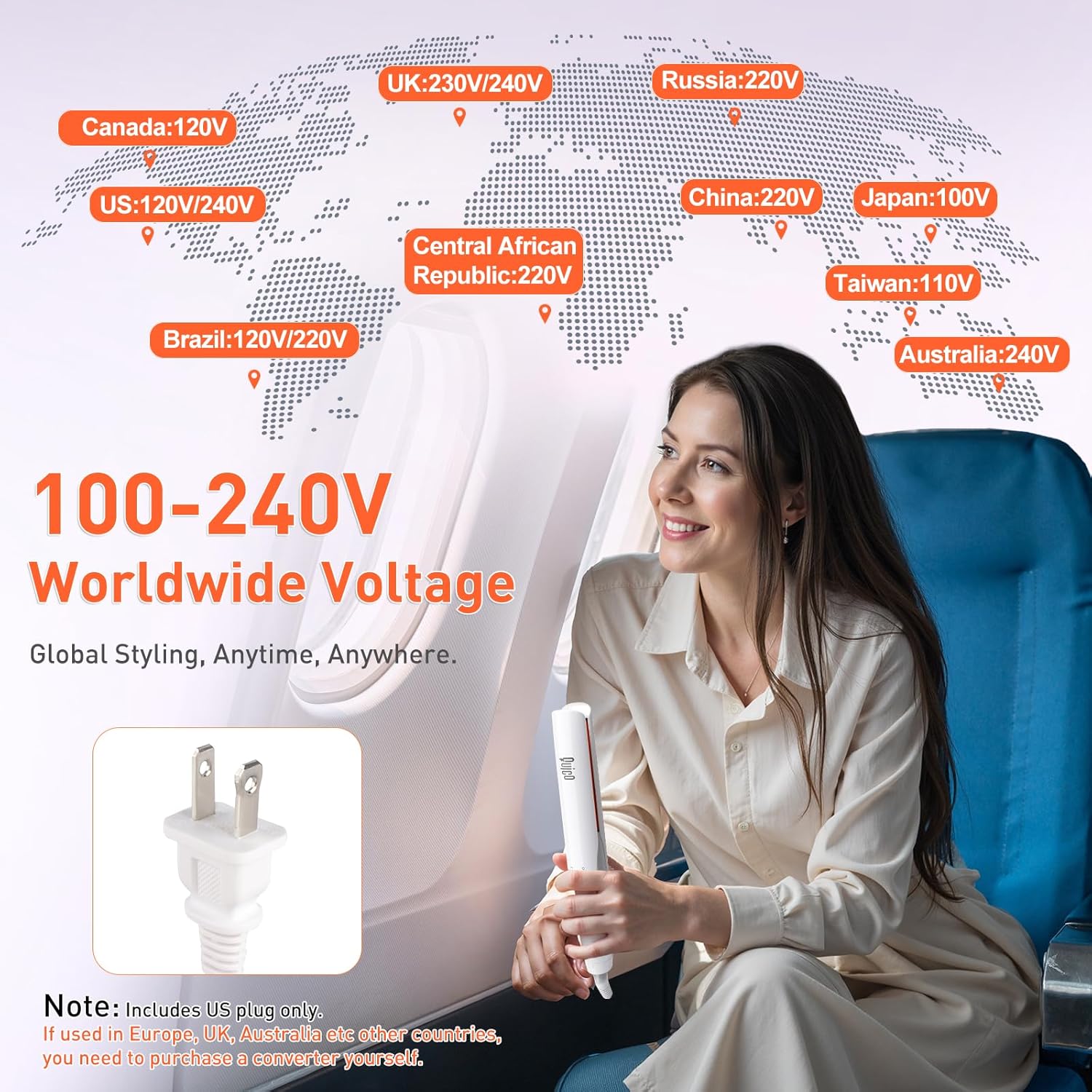 - 【Dual Voltage & Travel-Friendly Design】Designed for travel, this dual-voltage hair straightener (100–240V) works anywhere in the world. Its 2-in-1 straightening and curling features save you space—no need for extra hair styling tools on the go