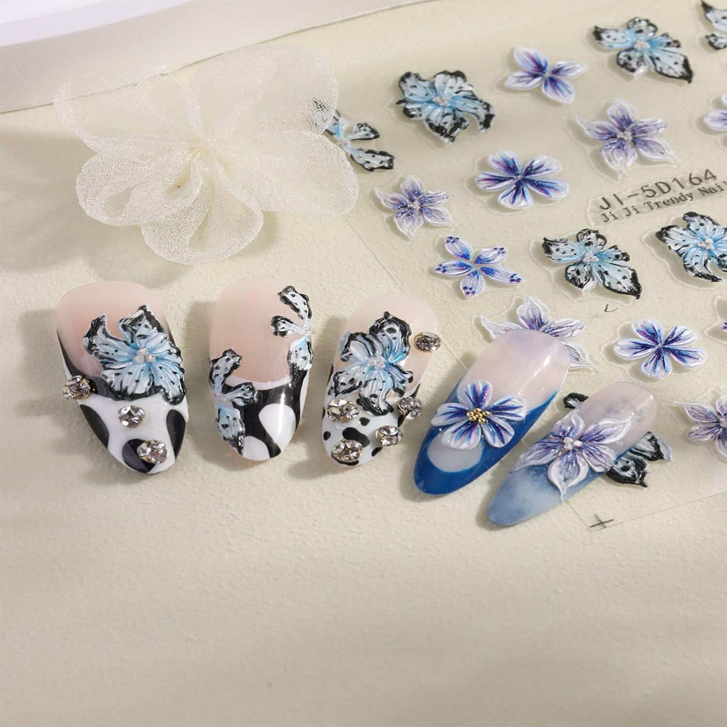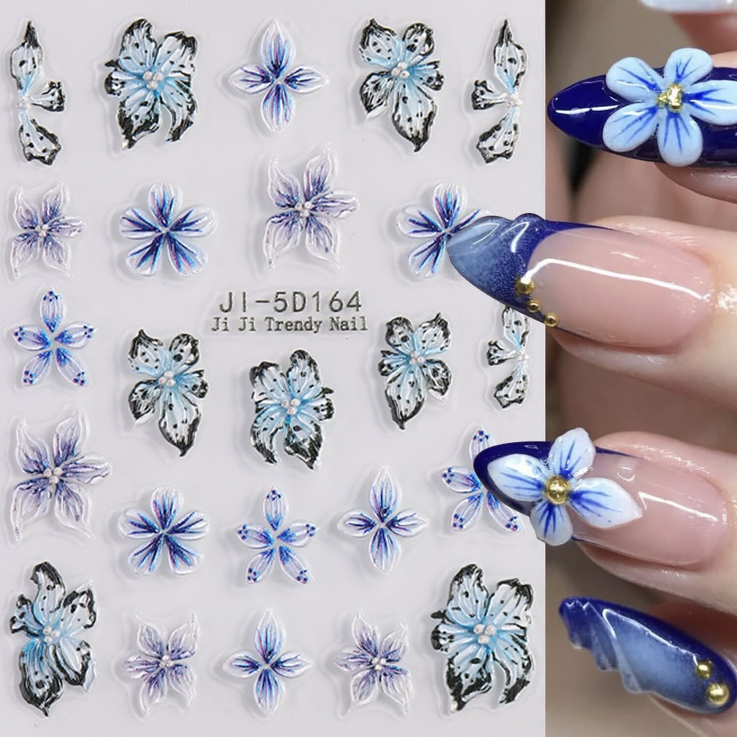 Stickers para Uñas Nail Stickers Self-Adhesive Sticker Red Blue 3D Wild Flower Calcomanías para Uñas Floral Art Design Accessories Hight Quality 3 Sheets