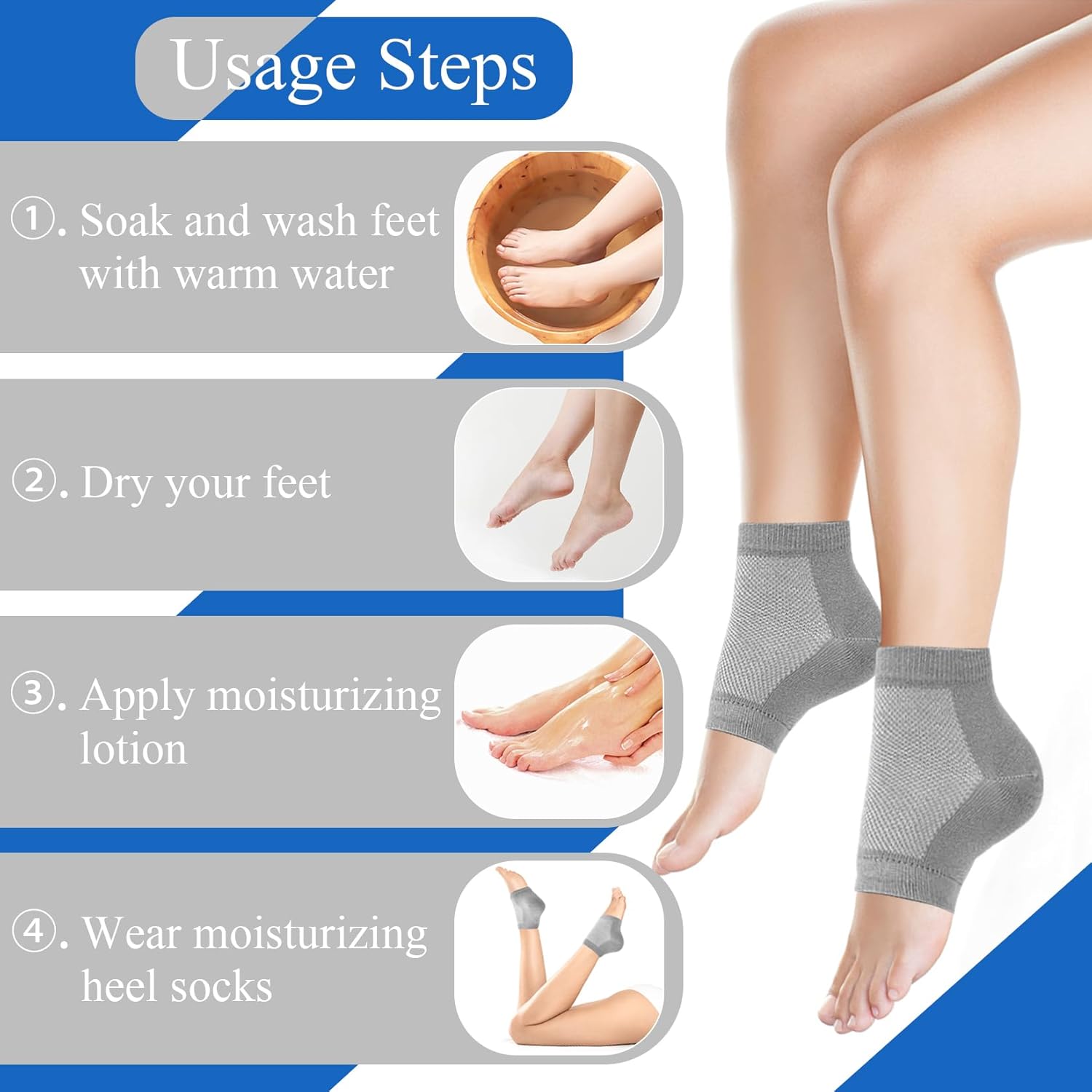 - 【Package Contains】: The package included 3 pairs of heel socks for dry cracked feet. It can wear it at home, office, playing sports or shopping, it is fits many shoes like sneakers, flats, boots, leather shoes, etc.