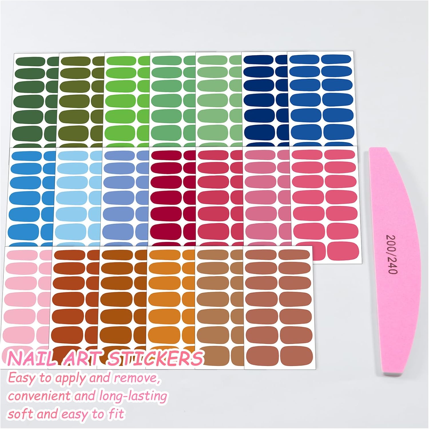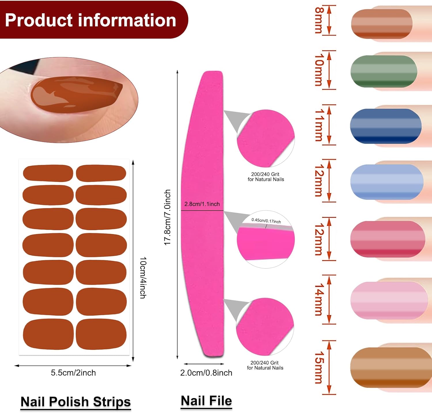 - Package Includes: 20 sheets of spring nail wraps for women + 1 nail file. Each nail sheet measures approximately 10 x 5.5 cm (4 x 2.2 inches), with a total of 280 pieces across 7 different sizes. With a variety of styles and colors, you'll always have gorgeous nails at your fingertips!
