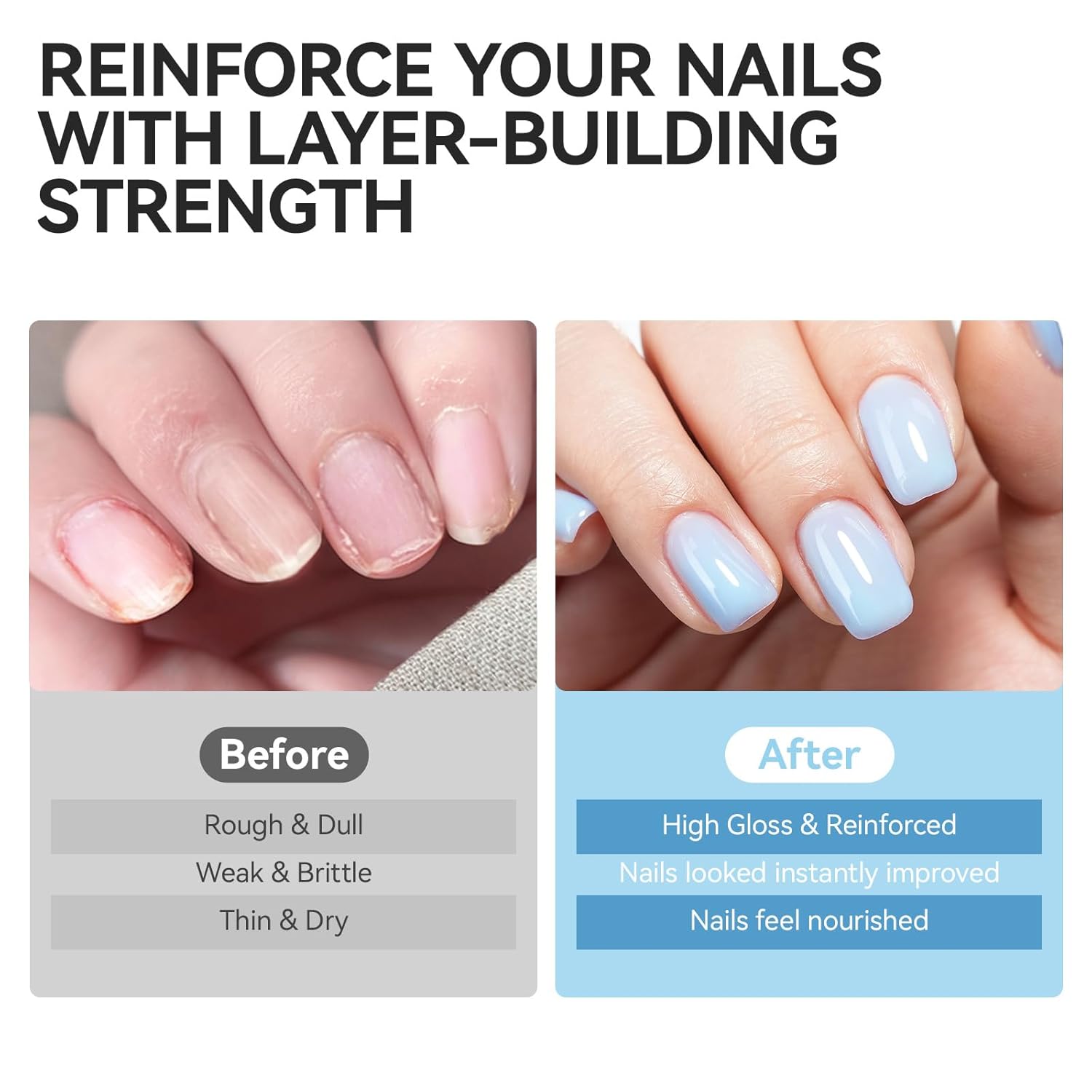 - Transform Thin Nails into Strong and Growing Ones: Say goodbye to brittle nails with our strengthener that gradually builds resilience. It's a game-changer for beginners, saves time for nail art enthusiasts, and allows professionals to offer top-notch, convenient services to their clients
