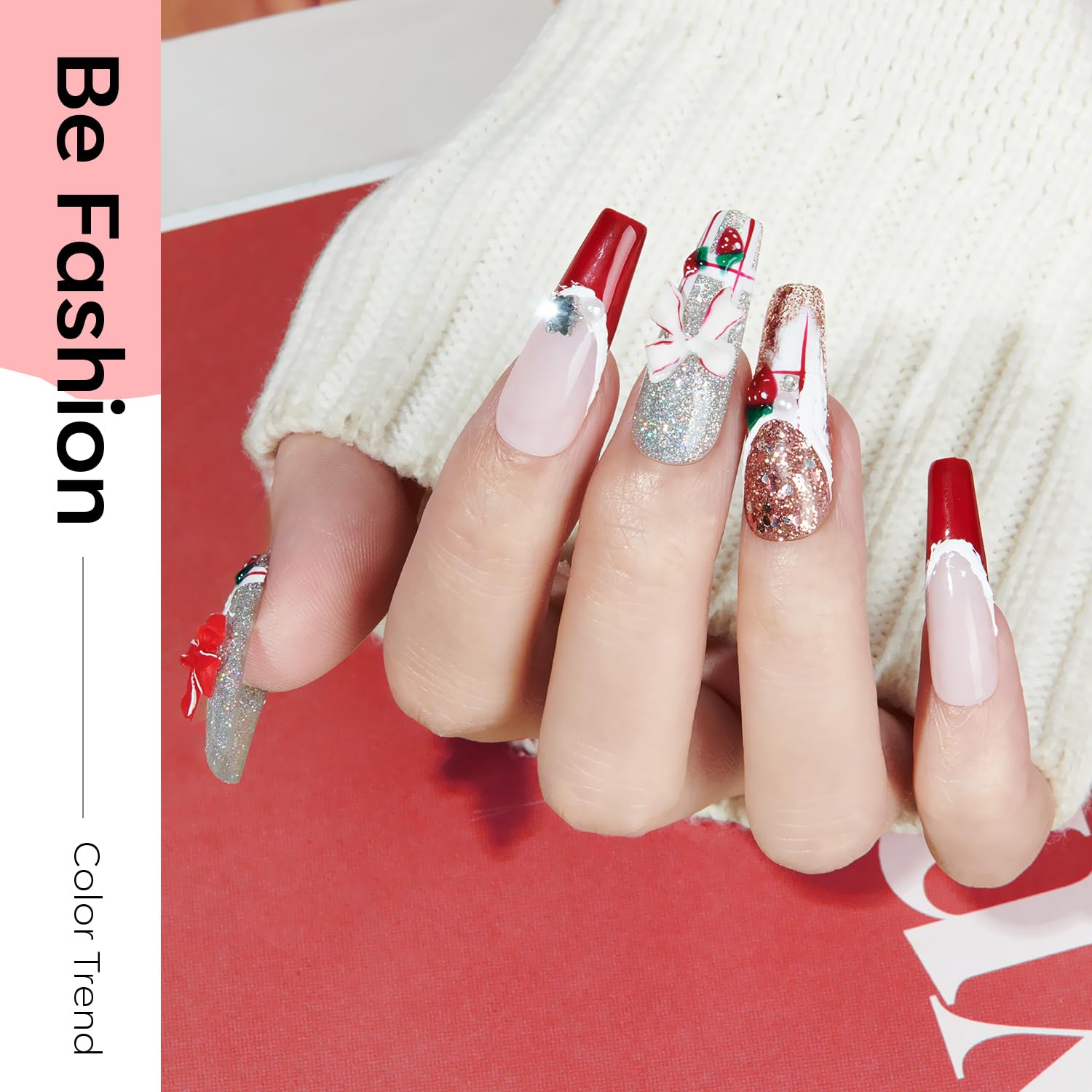 - Popular Gel Nail Polish Kit: 6 of the most iconic and trendsetting colors - Dark Red, Glitter Champagne, Snow White, Christmas Red, Glitter Red, Glitter Silver