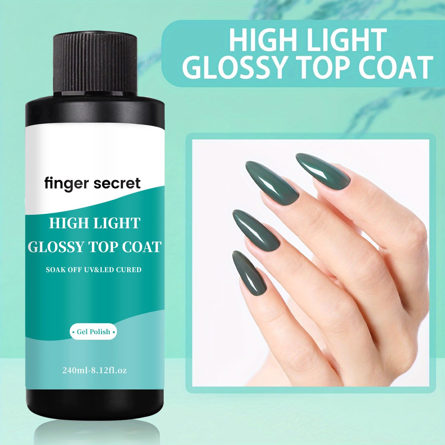 High Light Glossy Top Coat, 240ml/8fl.oz, Gel Polish Nail Polish for Nail Art Manicure DIY