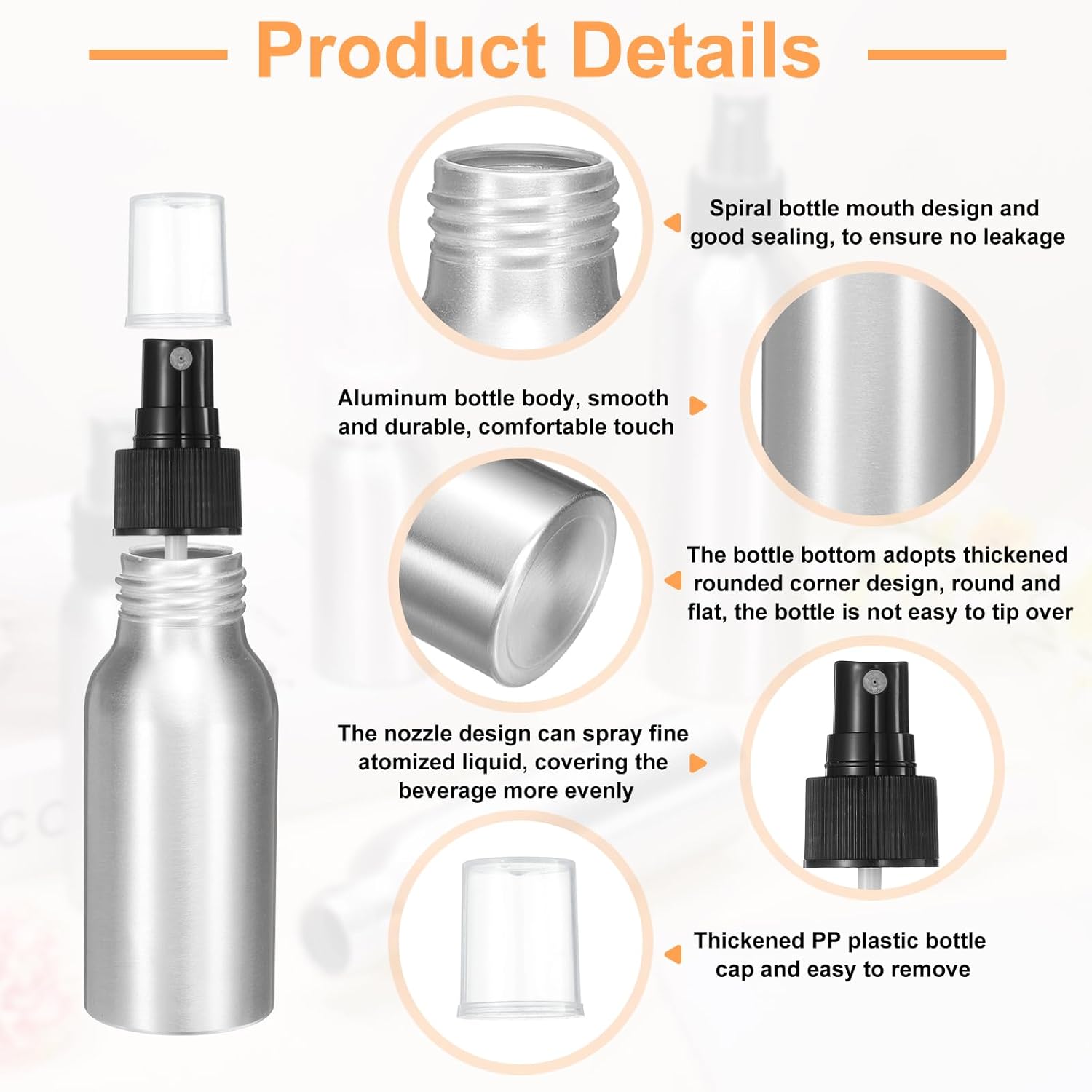HARFINGTON Aluminum Fine Mist Spray Bottles 50ml/1.7oz Metal Small Liquid Alcohol Refillable Travel Container with Black Plastic Nozzle Cap for Perfume Skincare Cosmetic Storage Bottle