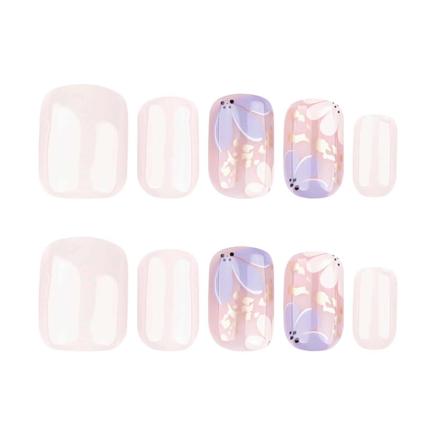 - Package Includes: 24 pcs stick on false glue on nails kit, each box includes 24 short press on nails, 1 sheet of 24 sticky nail pieces, 1 cuticle stick, 1 double sided nail file and gel press on nails cleaning pads, a small tube of nail glue,All the tools you need to apply the nails are included in one set