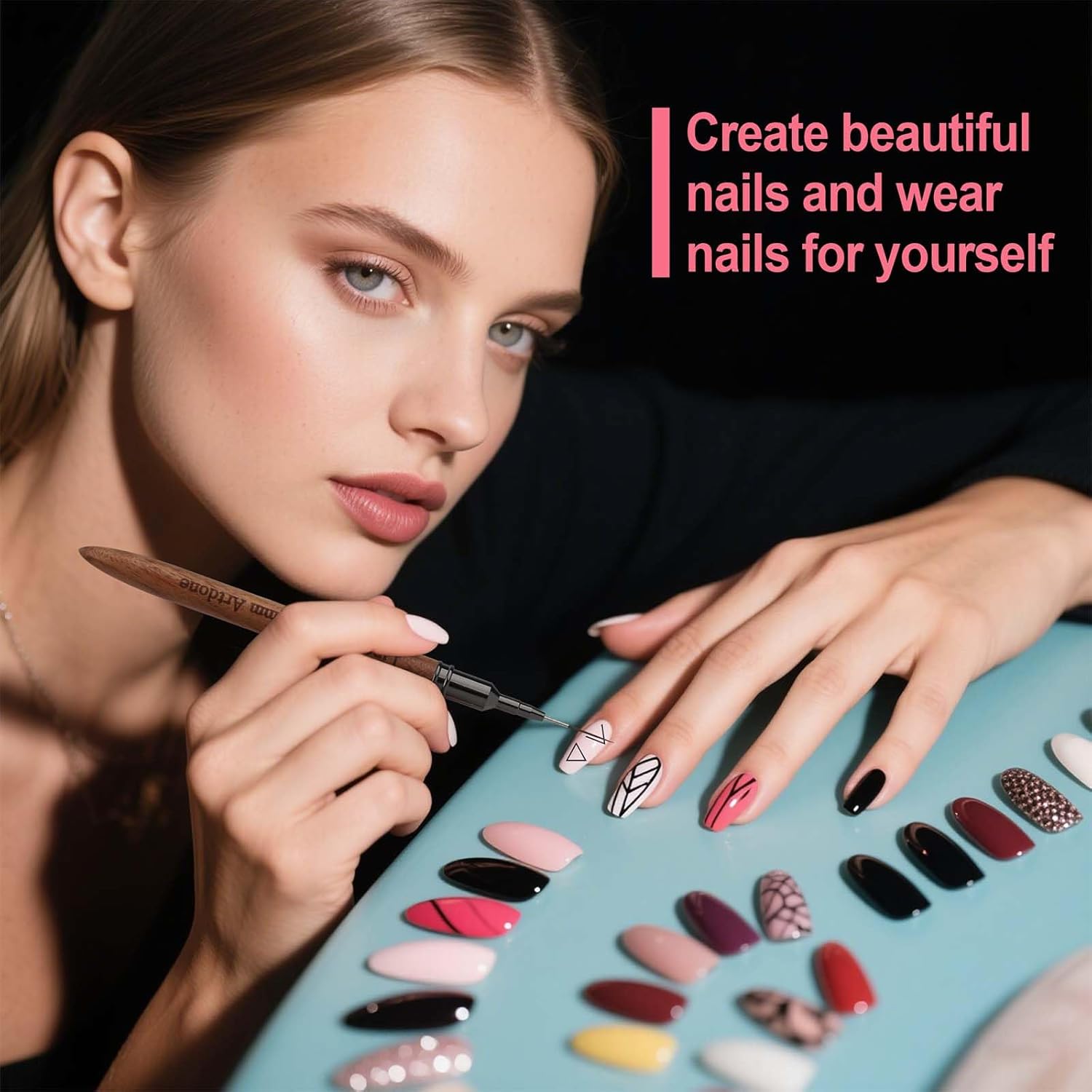 - 【FEATURES】The variety of brush sizes is great for nail art design, helping you create beautiful nail patterns in seconds. Ideal for drawing thin fine lines, Great for small details,short strokes.