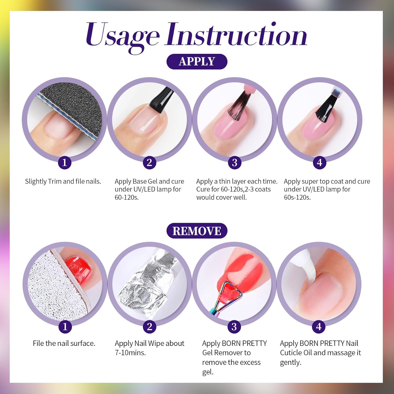 - [Salon Quality and Healthy]: Made of Toxin-Free Ingredients make it safe and has a low odor; Newly developed with nano-tech, the gel nail polish has no harsh ingredients or adhesives that lead to damaged nails