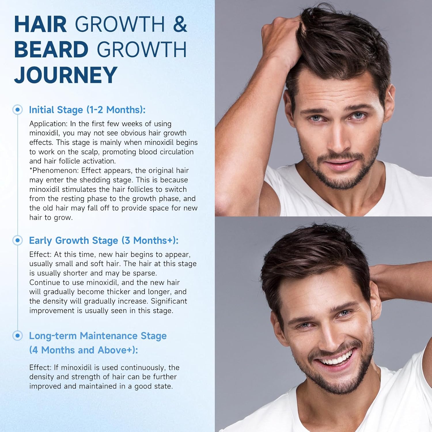 - Effective Hair Regrowth: 5% Minoxidil spray stimulates hair follicles in the resting phase to re-enter and prolong the anagen phase, allowing hair to grow for a longer period of time, thereby increasing the number and density of hair and make you restore thick hair/beard, healthier-looking hair that you have a more perfect image