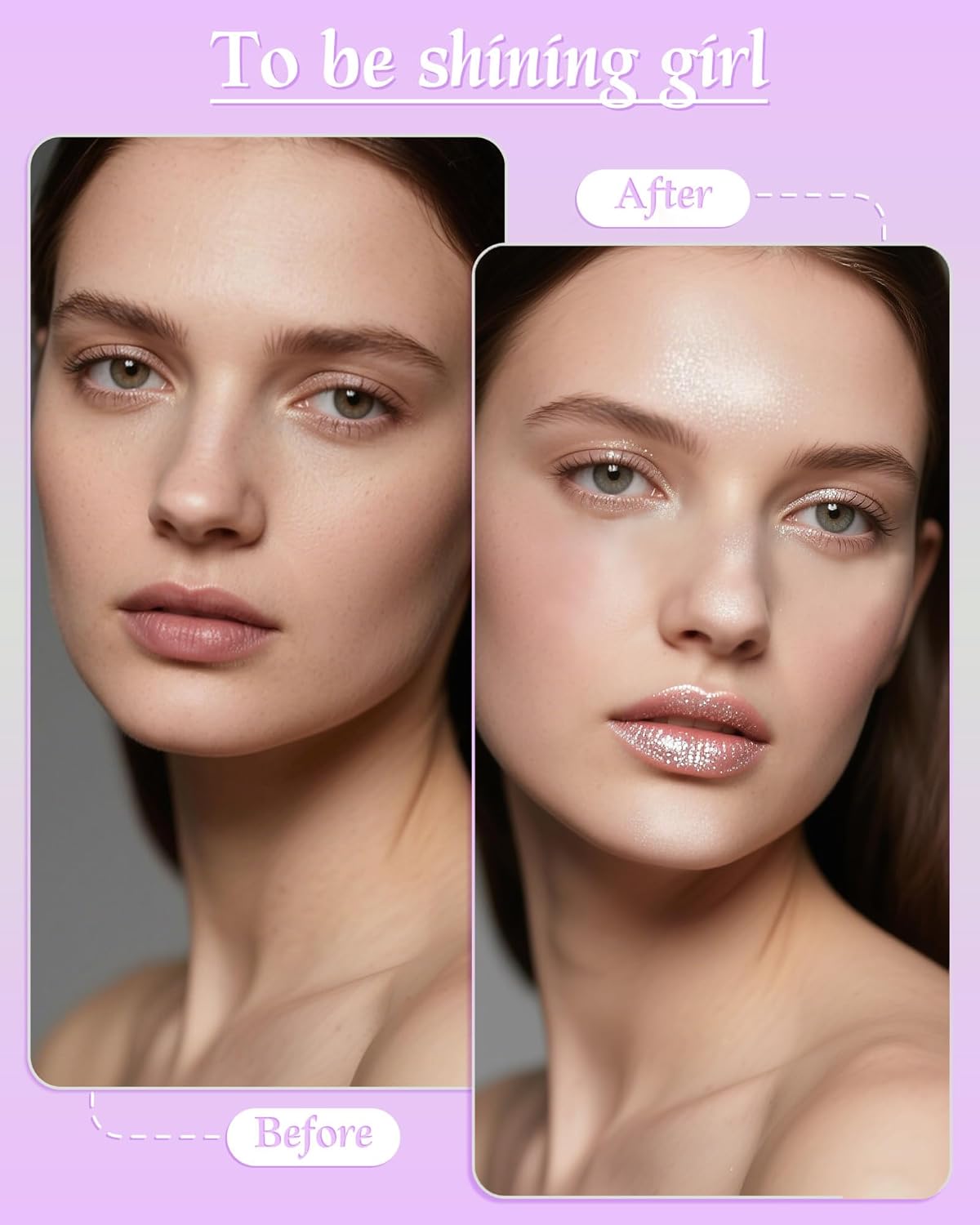 - Pearlescent Shimmer for Face & Body Glow:Infused with high-reflective pearlescent particles, this body shimmer powder delivers buildable radiance—from subtle natural glow to intense sparkle finish. Safe for face highlighter, collarbones, legs, and hair glitter under stage lights or daylight