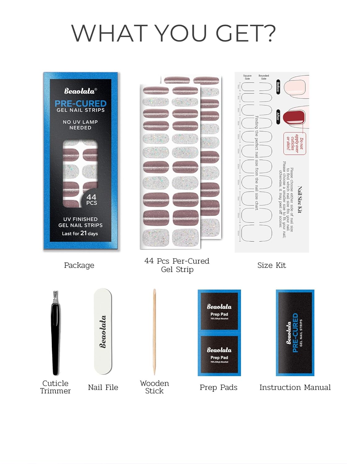 - Pre-Cured gel nail strips : Beaolata pre-cured gel nail strips utilize innovative technology that combines color gel with top coat gel, Professional Nail Results but no UV Lamp Needed.