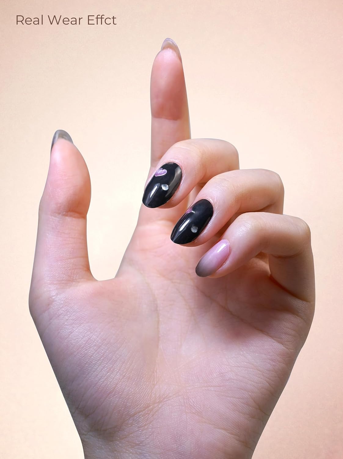 Pre Cured Gel Nail Strips - 44PCS Salon Quality Gel Nail Stickers - Long Lasting Polish Wraps for Women no UV Light Needed Easy Apply& Remove (Black Pulse)