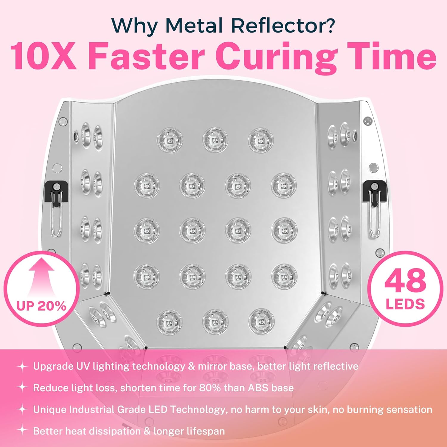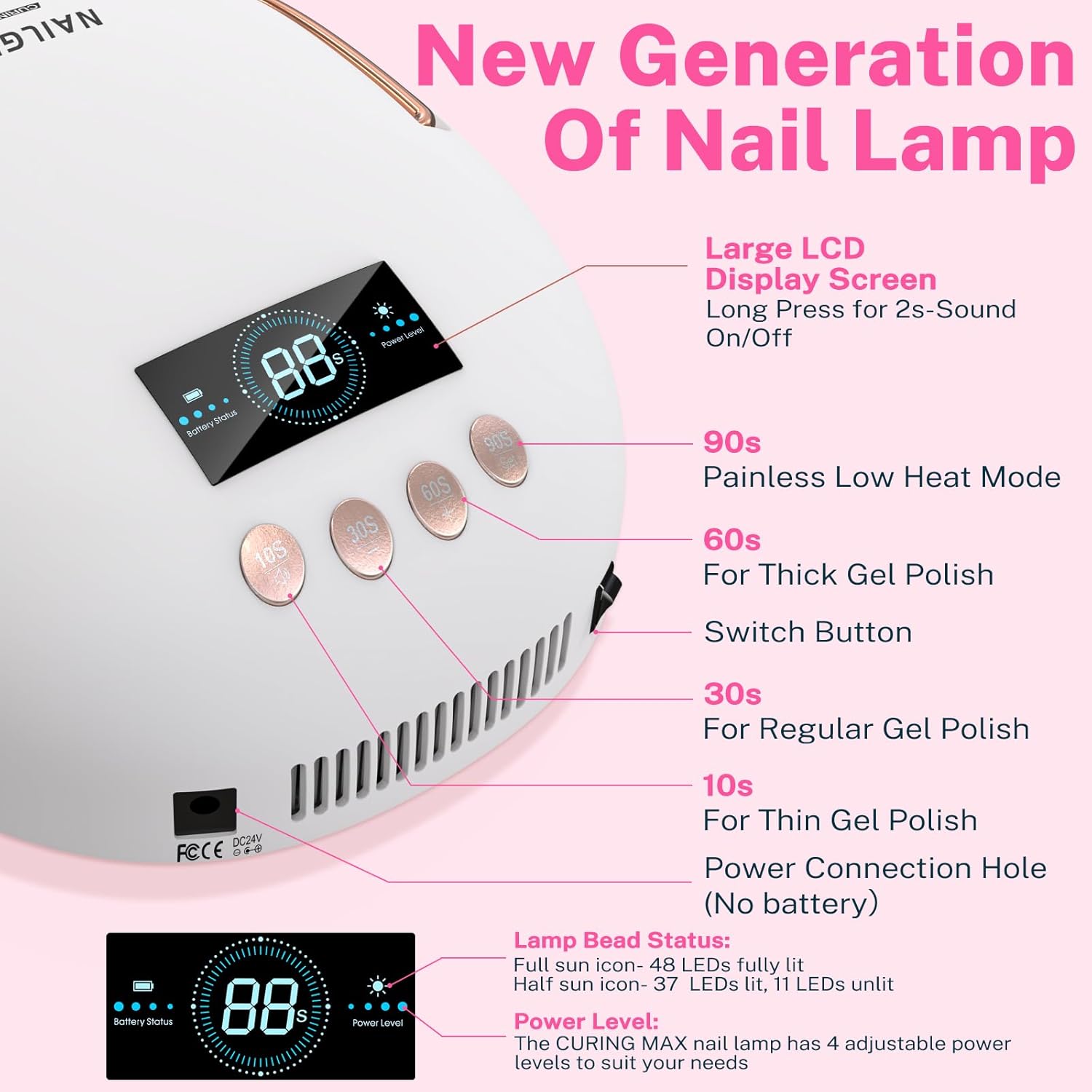 - Fast Curing Nail: UV LED nail lamp comes with 48pcs dual light source industrial grade lamp beads, saving time with its powerful LED technology designed for quick curing. Simulate ultraviolet sunlight shining from various directions, and the light is soft(365-405nm) and not glaring. This is nail lamp with the best drying effect among NAILGIRLS brand products, battery-free yet engineered to premium standards.