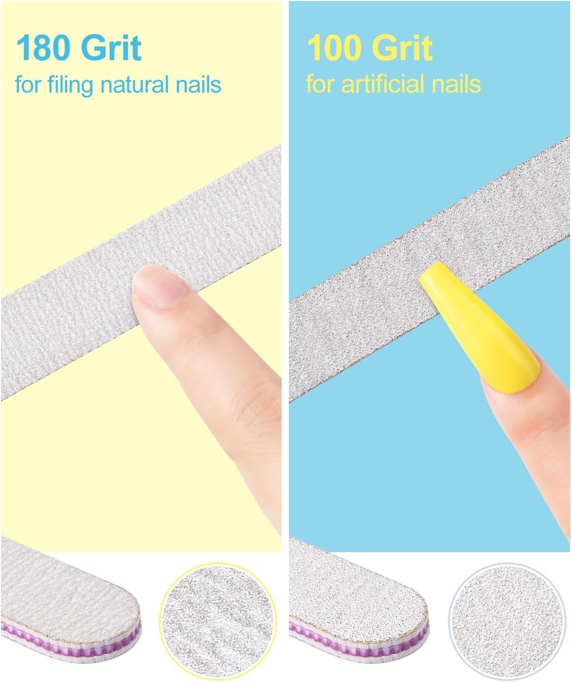 - Polish & Smooth: Made with high-quality adhesive tape and emery board materials, the 100/180 grit nail files are sturdy, durable, easy to clean and waterproof