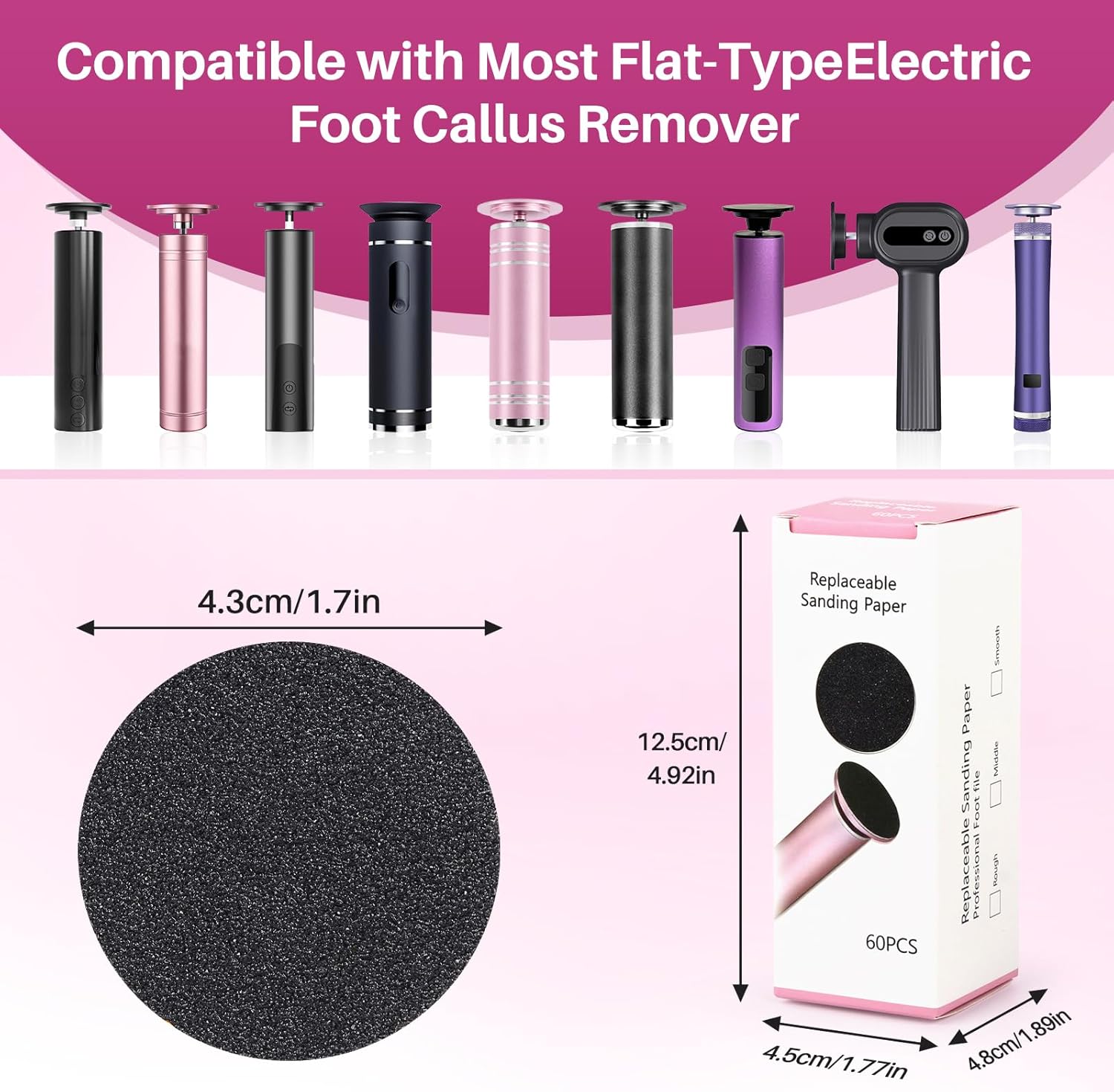 - 【Dual Grit System】"Package includes 60 Pcs professional-grade discs (30x 180-grit coarse + 30x 400-grit fine) - coarse discs target stubborn dry patches while fine discs polish skin to baby-soft smoothness. Lasts 6+ months with weekly use."