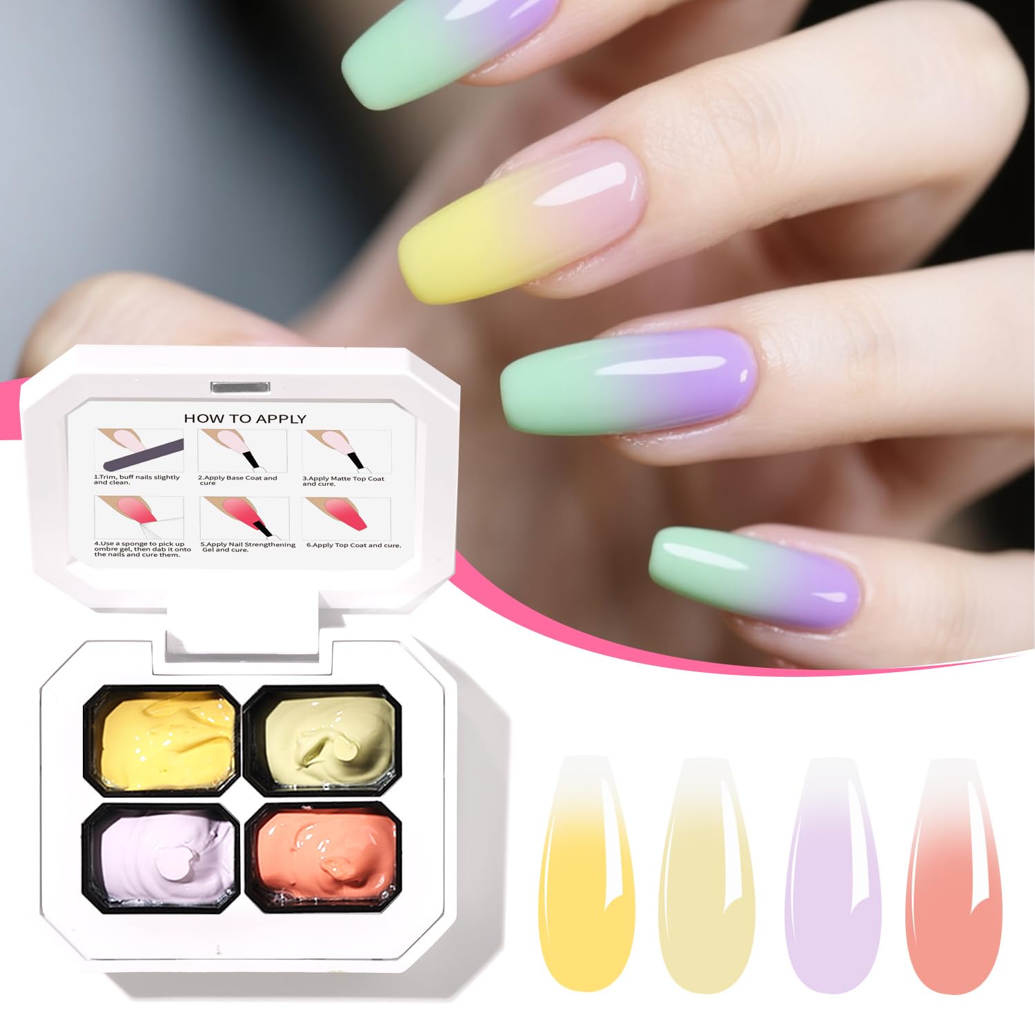 - Ombre Gel Polish Effects for Nail:The innovative formula of ombre gel nail polish ensures your ombre nails maintains good opacity for ombre gel transitions without streaks or patchiness, and stay vibrant without fading, while remaining easy to remove when desired.