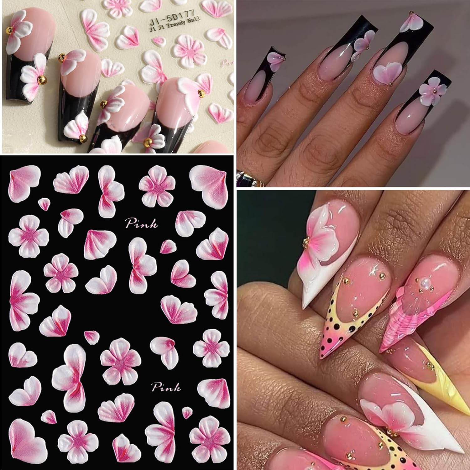 Spring Flower Nail Art Stickers Decals Floral Nail Decals Self Adhesive 5D Embossed for Women Nails Design Decoraion Colorful 3D Flower Mails Stickers Supplies