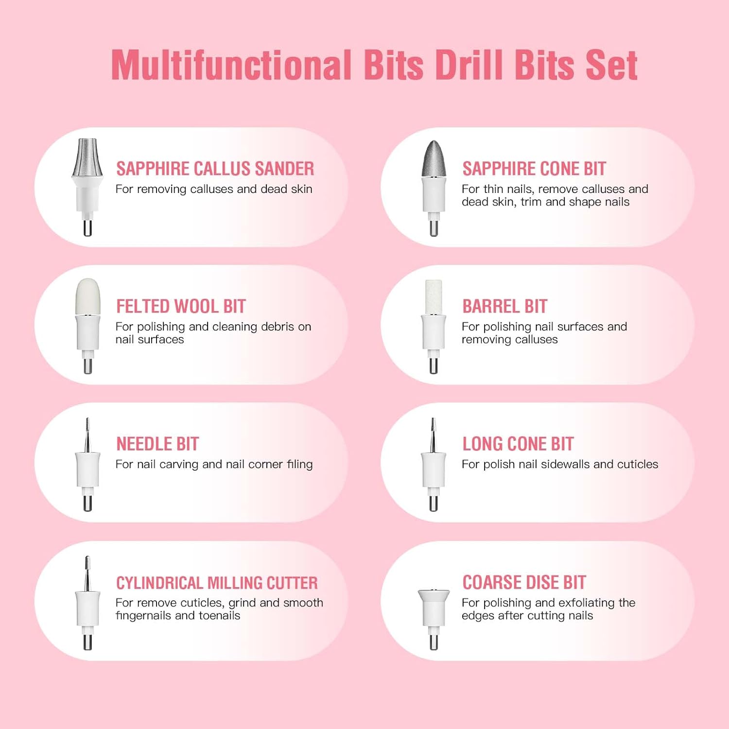 - 8 Grinding Heads for Customized Care - Includes fine sand heads for daily foot polishing and coarse sand heads for removing stubborn calluses. Removable design allows easy cleaning and quick head replacement for personalized pedicures