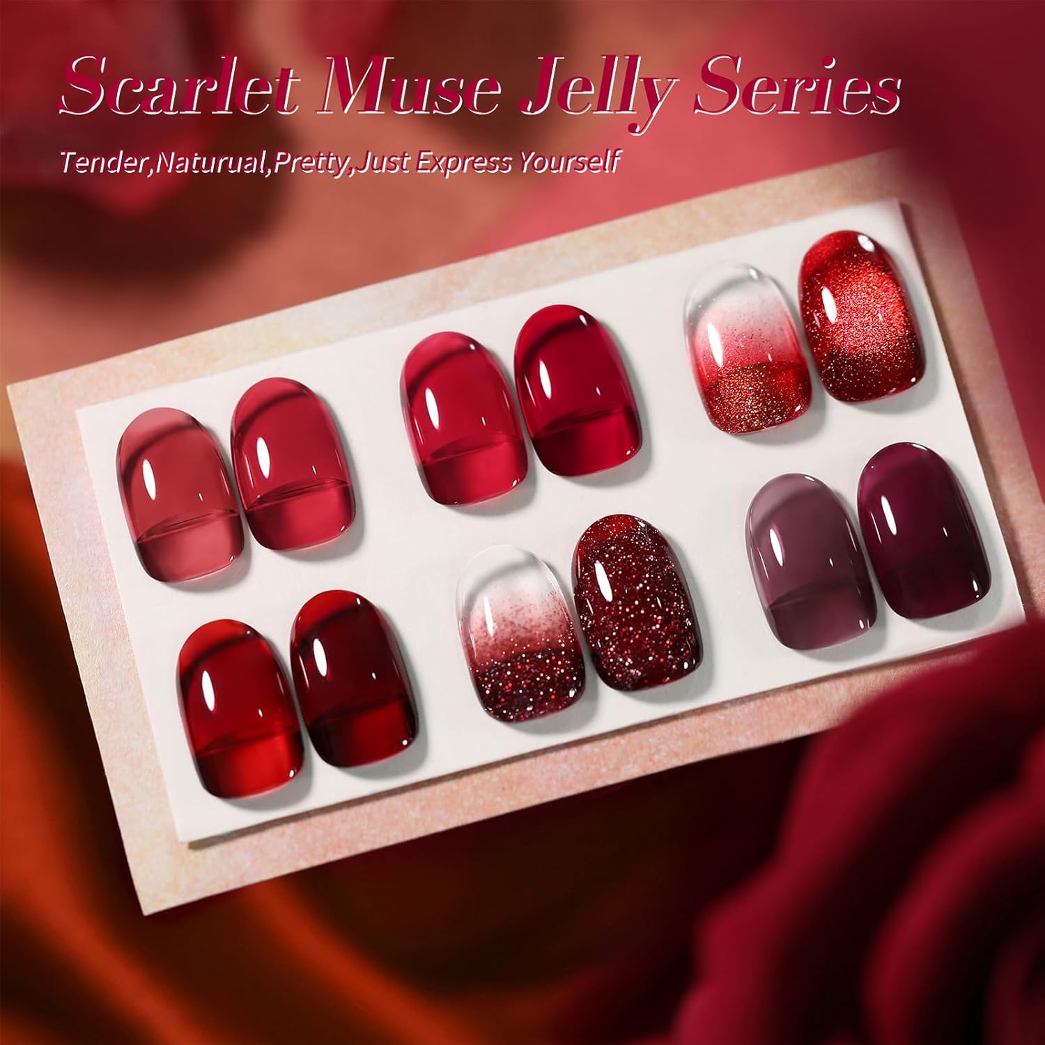 - EASY APPLICATION AND GOOD TENACITY: The series of jelly crystal gel nail polish set is long lasting for 21+ days with perfect shine under proper application - With base gel top coat under the full application process.High durability and intense pigmentation makes it stay last longer and brings you brilliant shine finish.