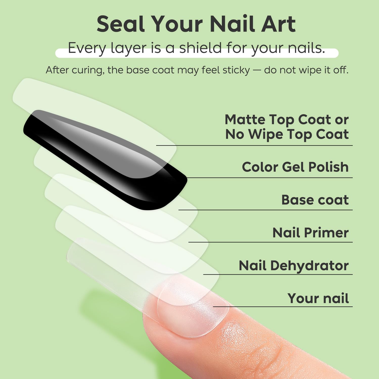 - With Gel Base ensures a smooth, even application while the Top Coat provides a high-gloss finish, protecting your nails from chipping and peeling.