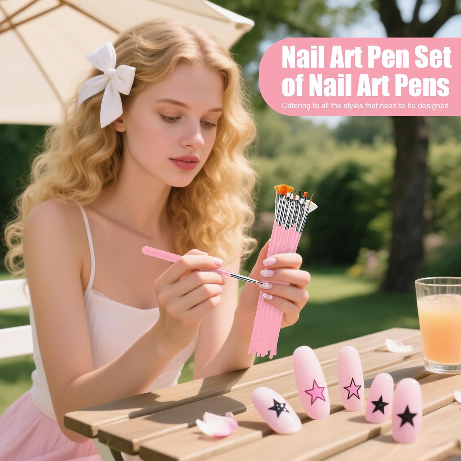- Package contains:Include 15pcs pink nail art brushes set