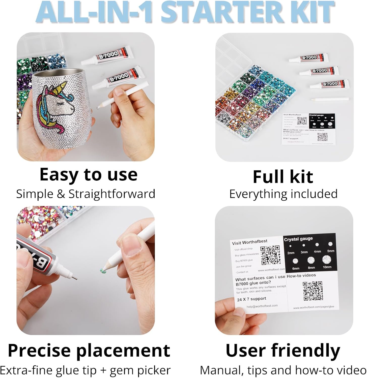 - Easy to Use -- This kit is designed to be straightforward, and versatile for various crafting projects. The manual is user-friendly and beneficial for both novice and experienced crafters. The complete and durable tools are suitable for precisely applying rhinestones to create intricate designs, with no additional tools required. Rhinestones are easy to apply and remove. The sturdy container with 12 grids keeps all rhinestones organized by size and color, making them easy to store and access