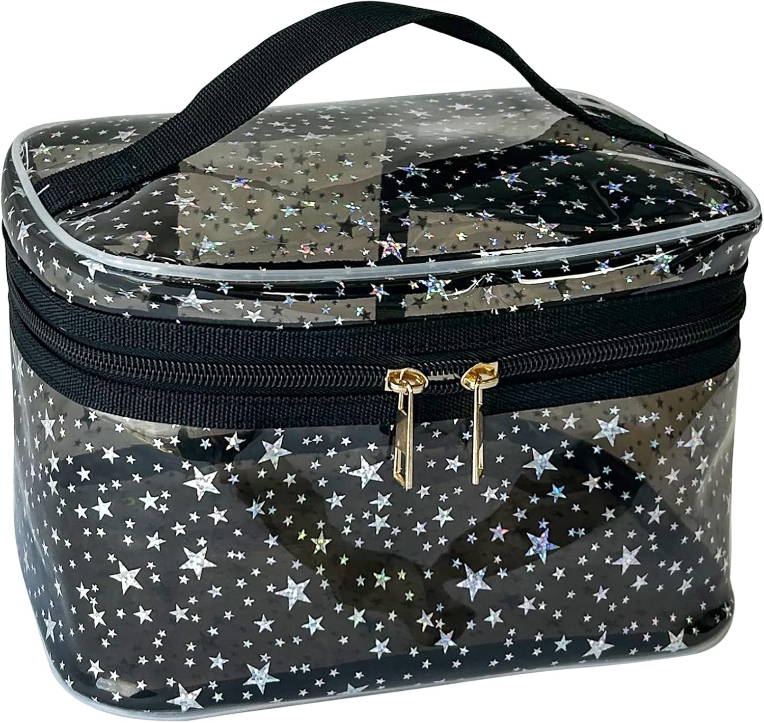 Holographic Makeup Bags Bulk,Clear Storage Bag Toiletry Pocket Portable Zippered Iridescent Pouch Waterproof Cosmetic Gift Bags for Women (Black-L)