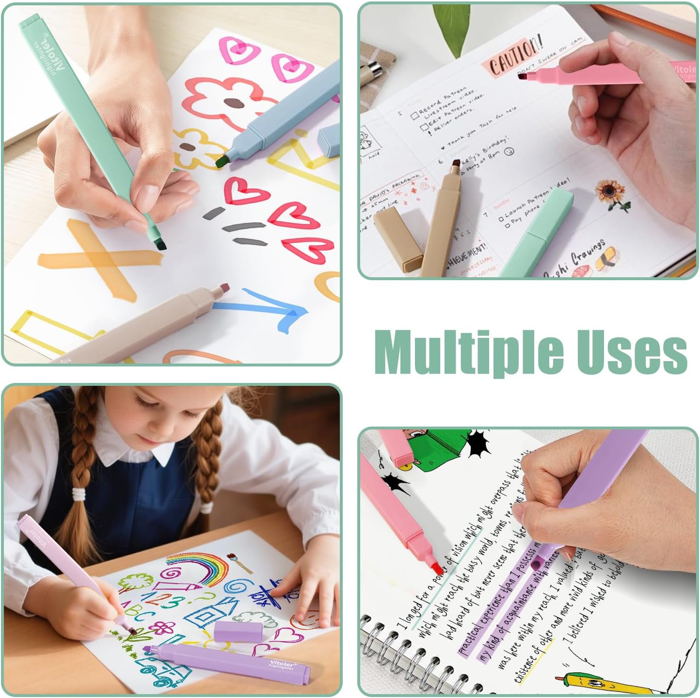 - Cute Highlighters Multipurpose Use:These bulk highlighters are suitable for bible, school, college, home, office, even travel diary, schedule, work, study, notes