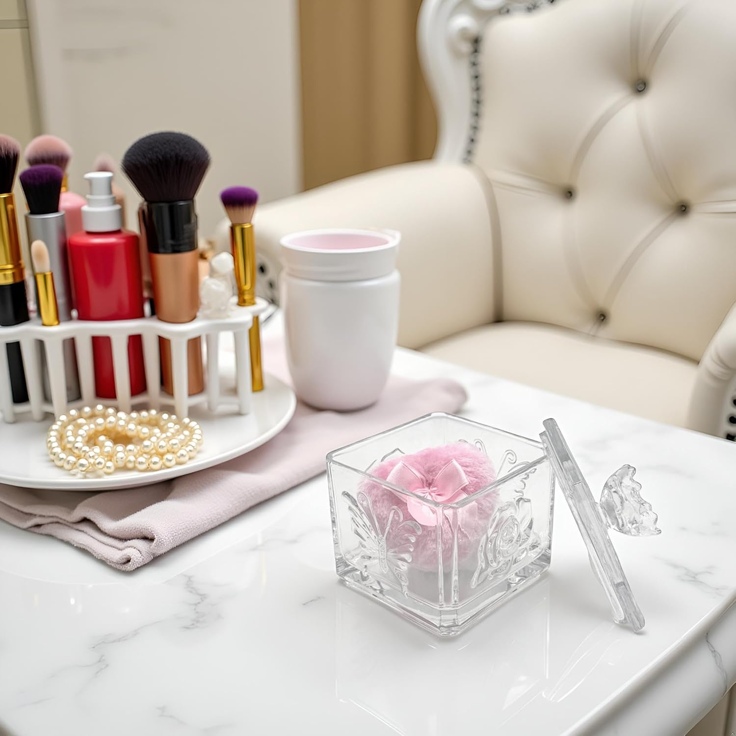 - 【Multi-Purpose Glass Box】This glass powder puff case can not only be used to store powder puffs, but also can be used to store earrings, rings, bracelets, hair accessories, knick-knacks, as well as other items in the dresser, bathroom and bedroom. It keeps your items away from dust and water, protects and decorates, and meets the needs of female users for cosmetic organization