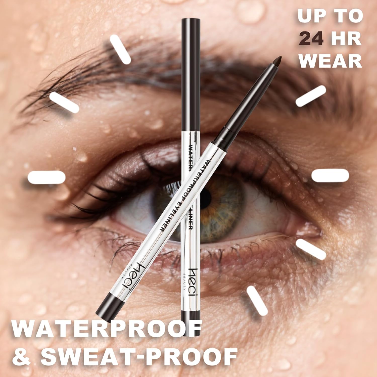 Mechanical Gel Eyeliner Pencil with a High-Pigment, Waterproof & Smudge-resistant, Glide Tip Eye Makeup with Up to 24HR Wear, Waterline Eye Liner with Built-in Sharpener (Dark brown)