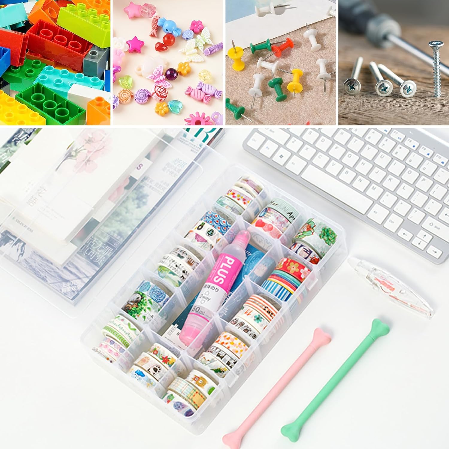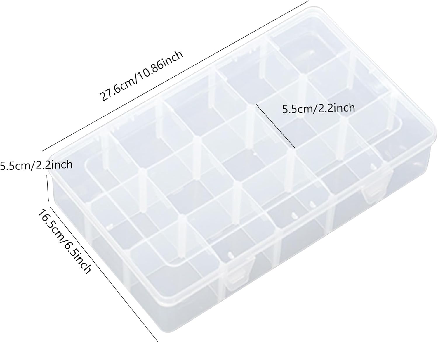 15 Large Grids Plastic Organizer Box with Adjustable Dividers,divided storage containers,jewelry organizer,Clear Storage Box for Jewelry,Art DIY Crafts,Washi Tapes,Beads and Small Parts