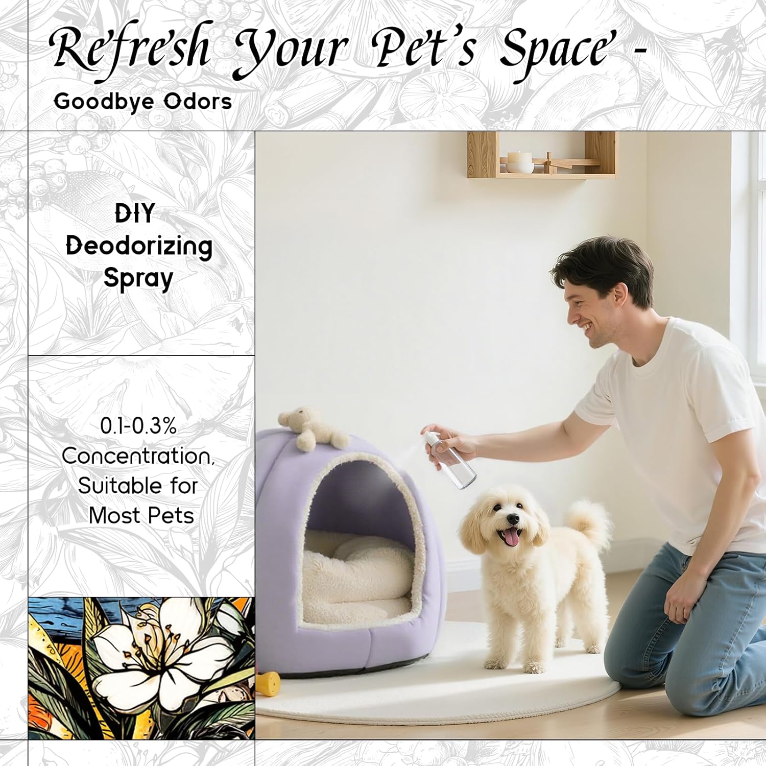 - Pet-Friendly: A few drops mixed with water in a spray bottle effectively neutralizes odors from litter boxes, leaving a fresh, clean scent that's gentle on your pet's senses