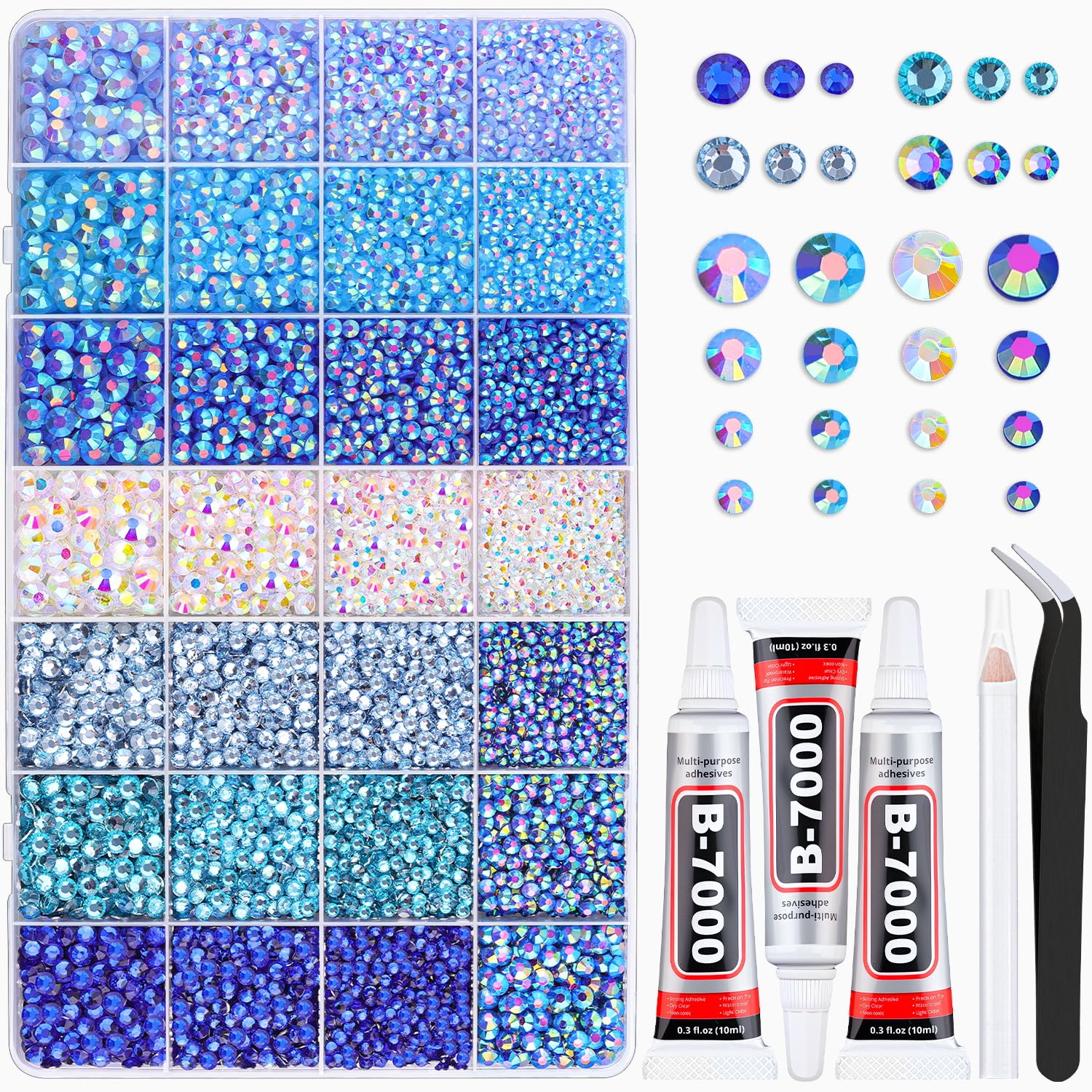 20000Pcs Blue Rhinestones for Bedazzling with 3Pcs B7000 Jewelry Glue, Resin Rhinestones for Crafting Crafts,Bedazzler Kit Flatback Gems for Clothing Shoes Tumblers Nail Art