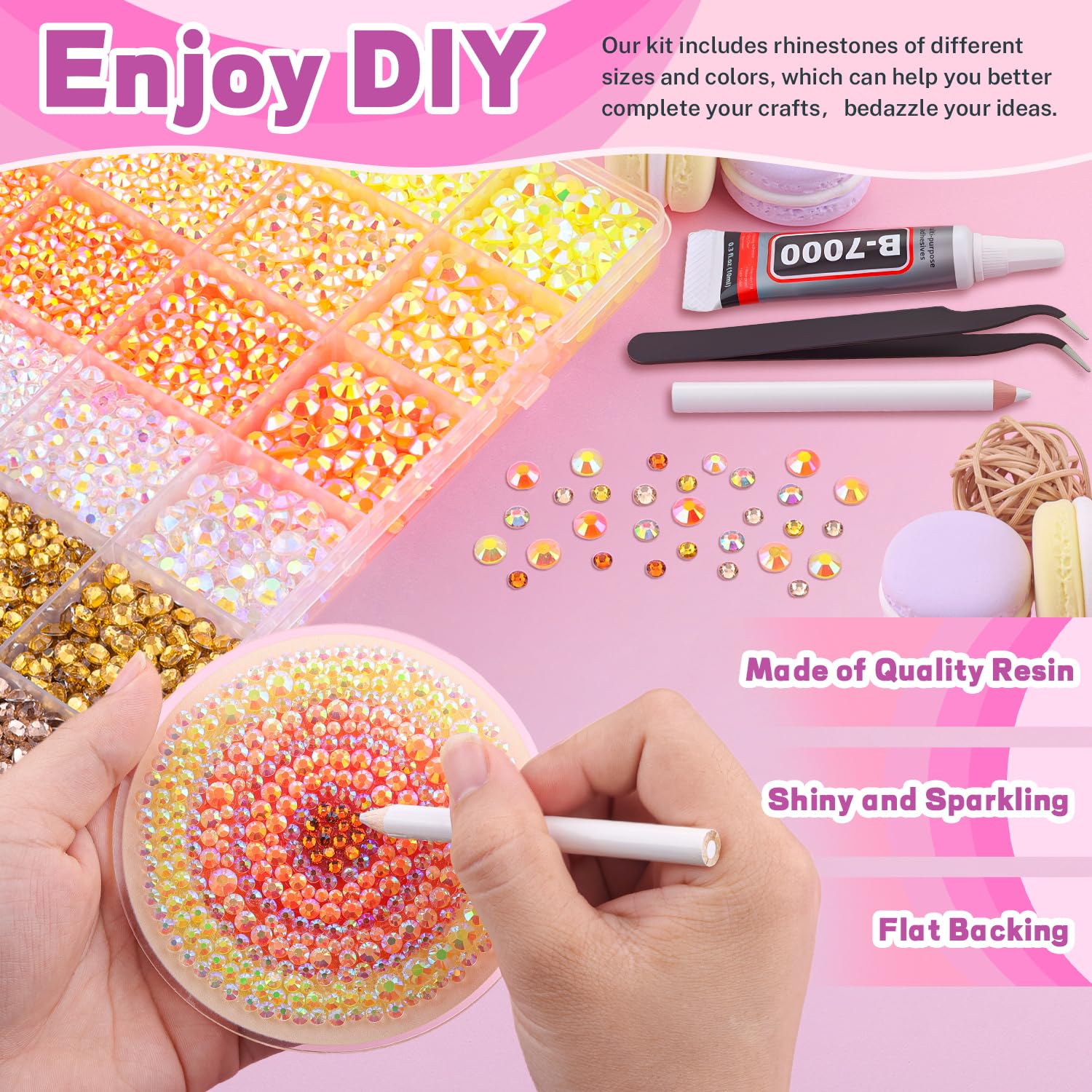 20000Pcs Yellow Rhinestones for Bedazzling with 3Pcs B7000 Jewelry Glue, Resin Rhinestones for Crafting Crafts,Bedazzler Kit Flatback Gems for Clothing Shoes Tumblers Nail Art