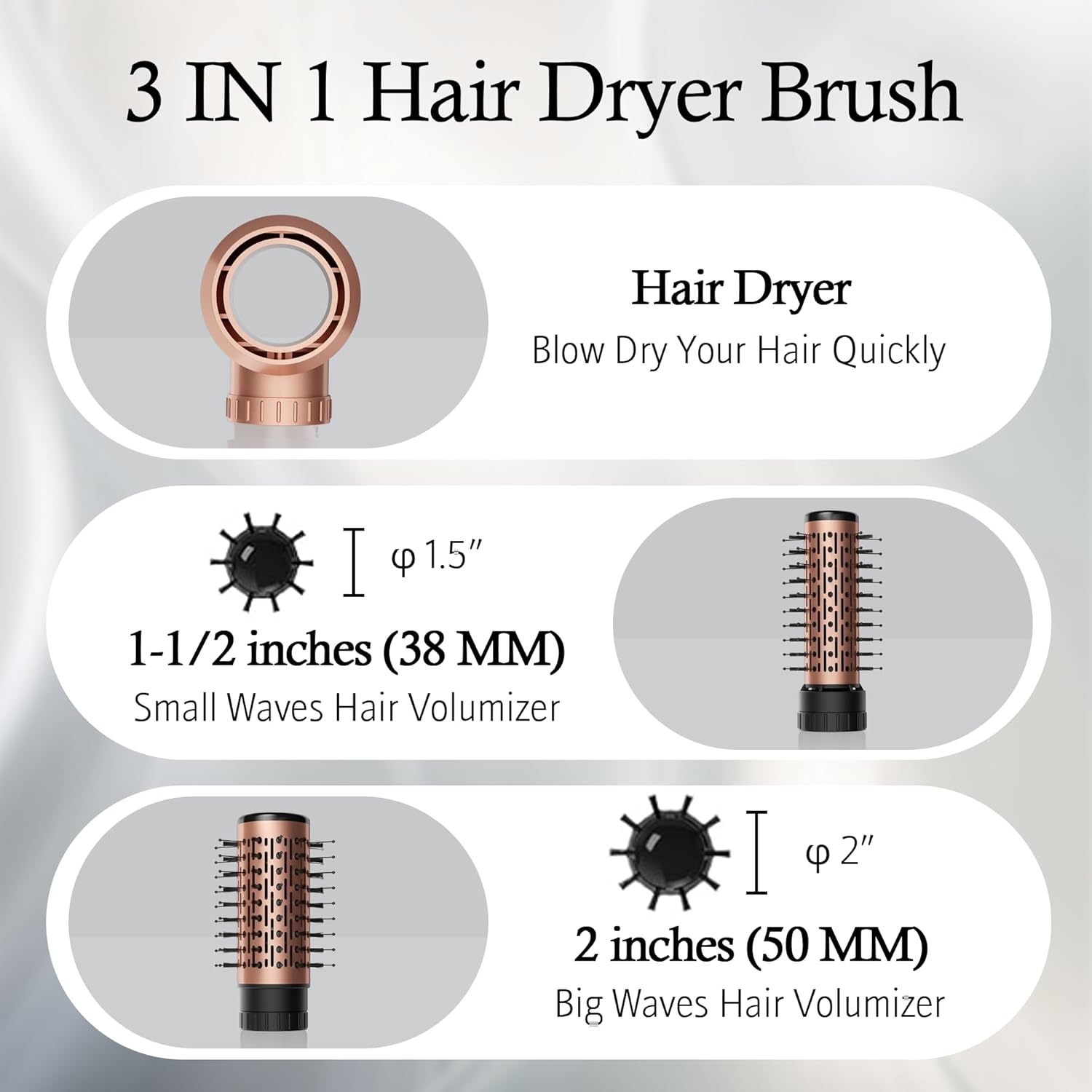 - Diverse Styling Options: Comes with three interchangeable attachments that rotating hair brush caters to various hair lengths and types