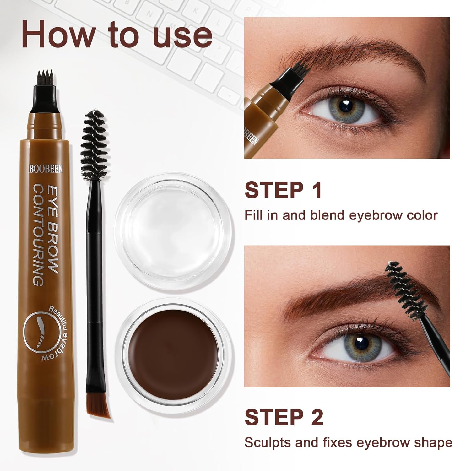 Boobeen Waterproof Eyebrow Pencil with Pomade, Brow Gel with Dual-ended Brush, Long-Lasting Natural Hair-Like Brows for All Skin Tones, Brown