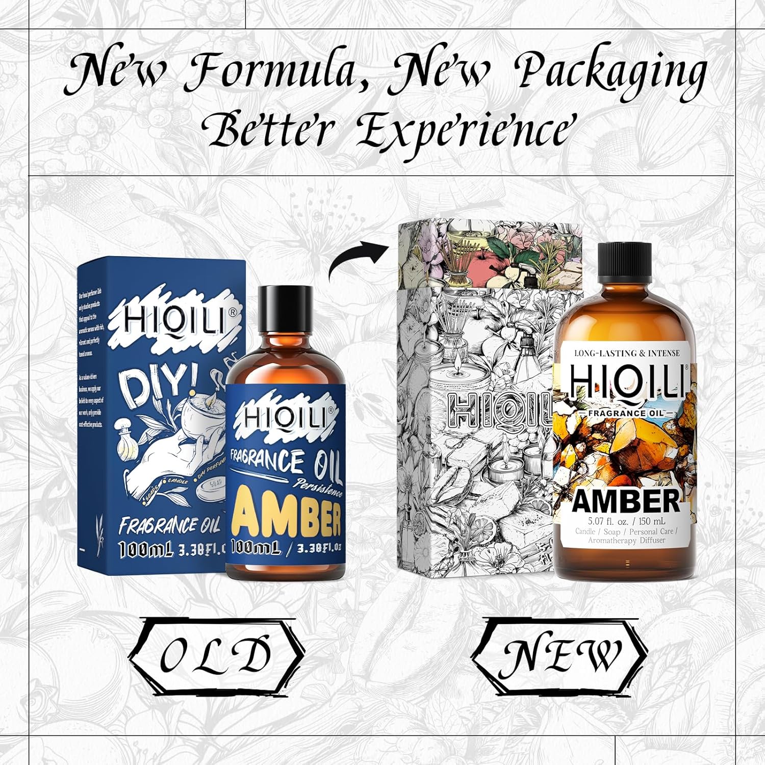 HIQILI Amber Fragrance Oil for Candle, Perfume, Soap Making, Hotel Scents for Essential Oil Diffuser & Aromatherapy - 5.07 Fl Oz