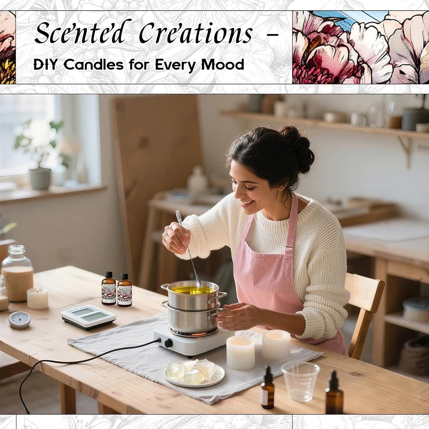 - Peony Petal Scent: A clean floral note with gentle sweetness and a hint of powder, capturing the modern grace of peony in full bloom
