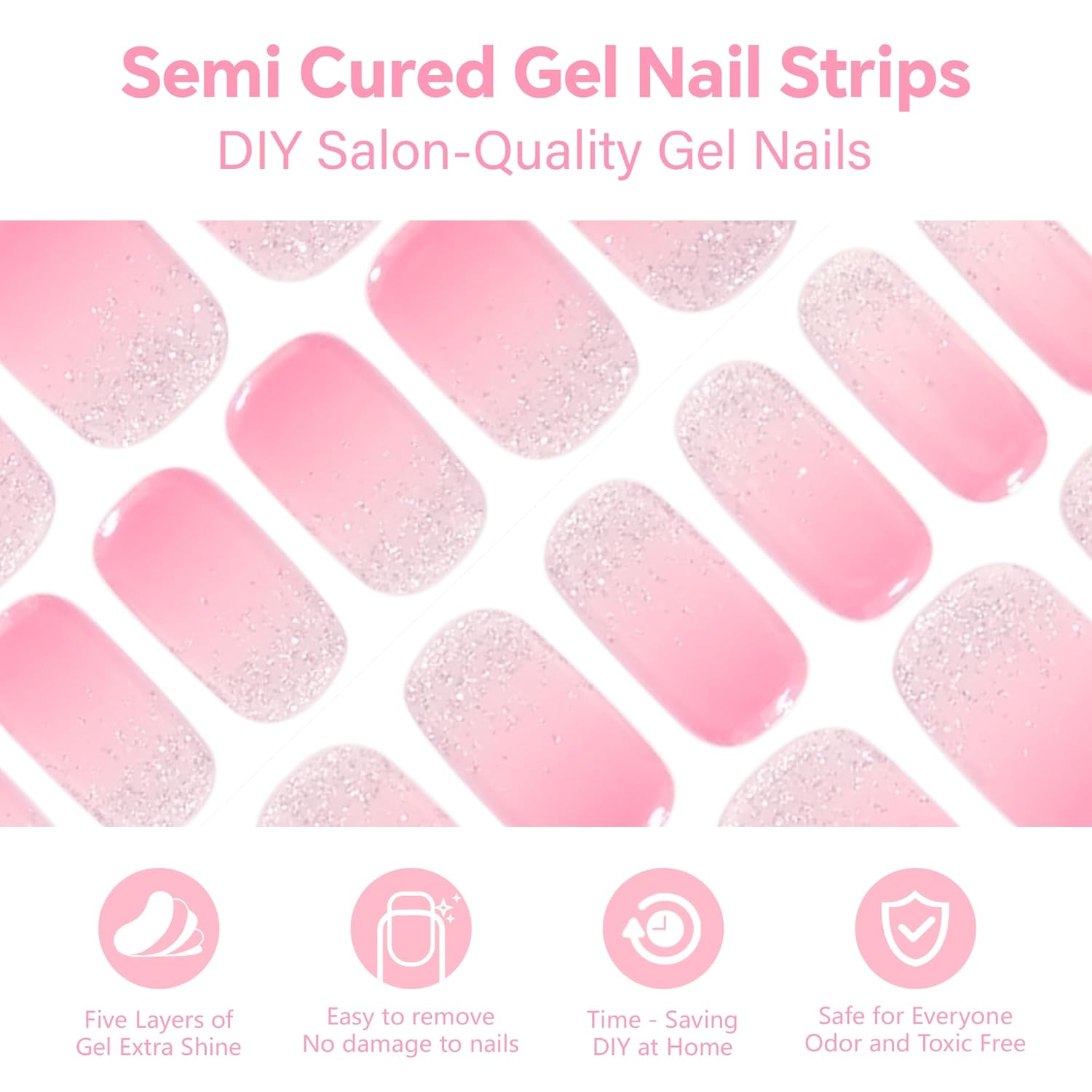 Semi Cured Gel Nail Strips-Salon Quality Semi-Cured Gel Press On Nails Stickers Quick DIY Nail Art Manicure Kits for Women at Home Works with Any UV/LED Lamps(Dress Up)