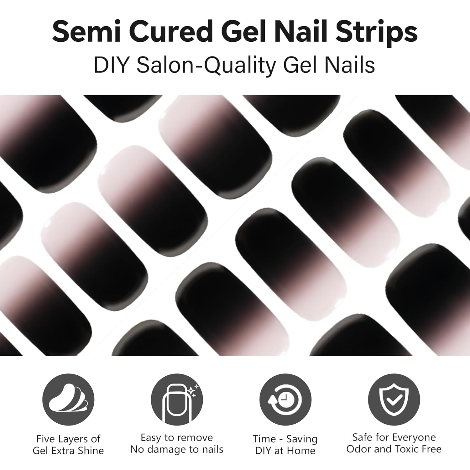 Semi Cured Gel Nail Strips-Quick DIY nail art stickers semi cured gel strips salon quality manicure at home instant beauty solution,Works with Any UV/LED Lamps(Party Night)
