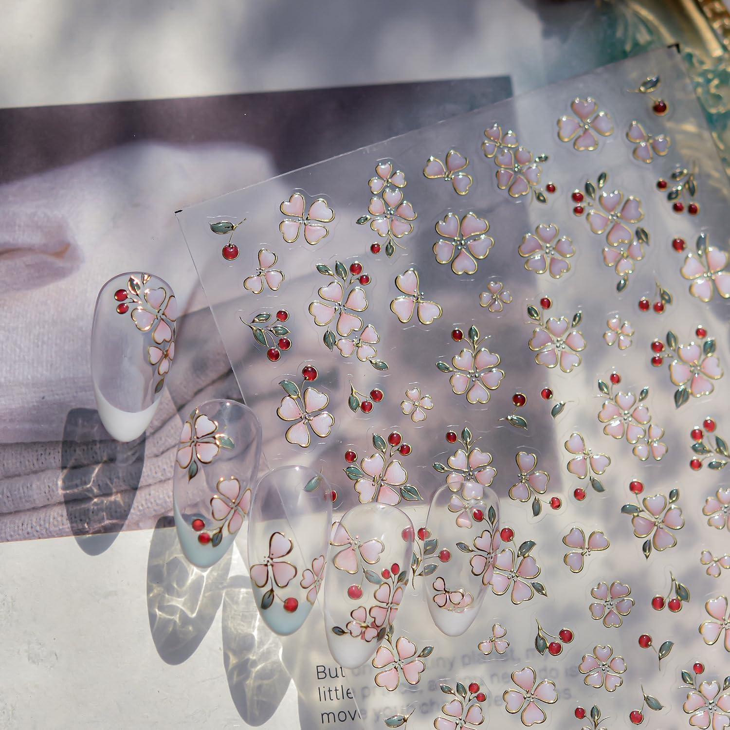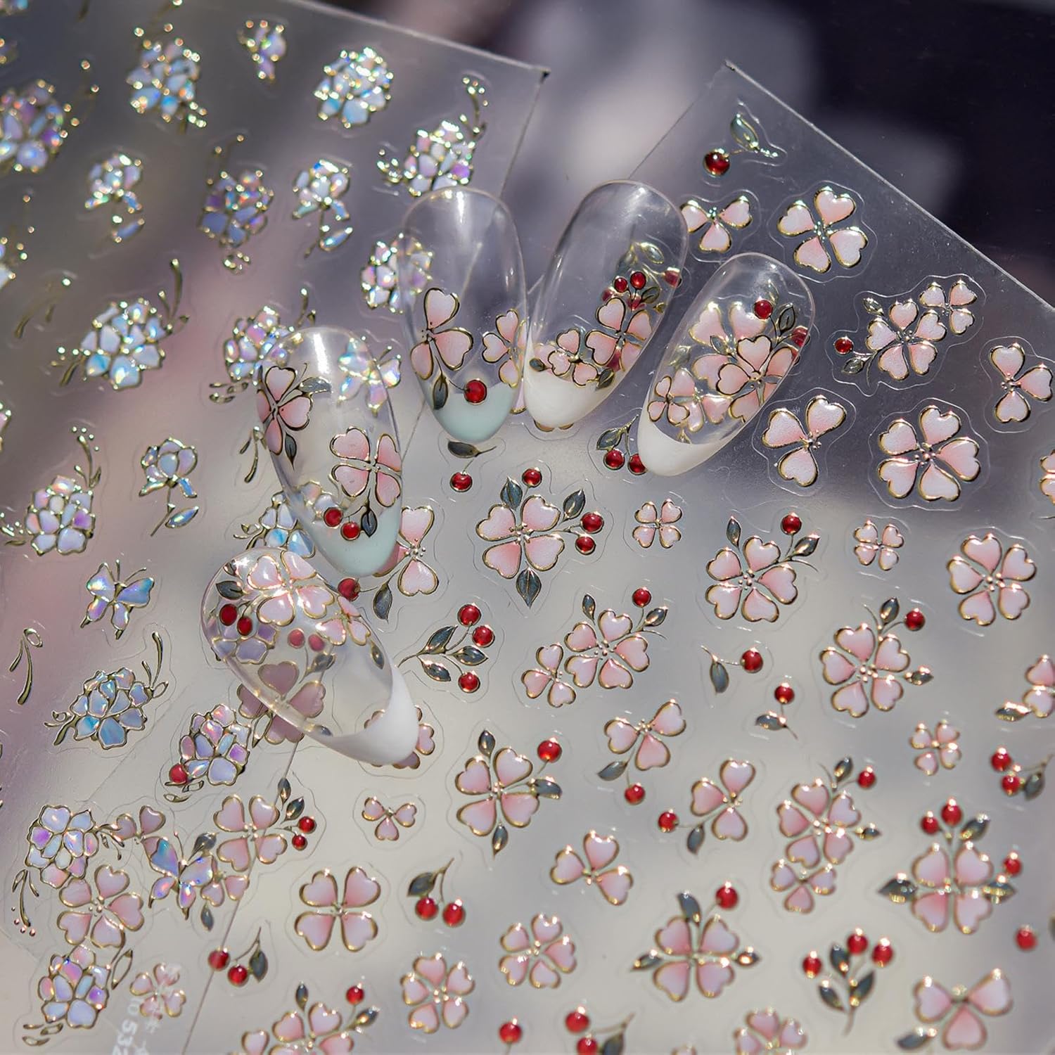 - Easy to Use:Floral nail stickers,easy to operate,no need to carry out complicated painting,it only takes a few minutes to easily design nails.You can easily apply in gel nail,acrylic nail,natural nail,false nail, nail tip, toenails