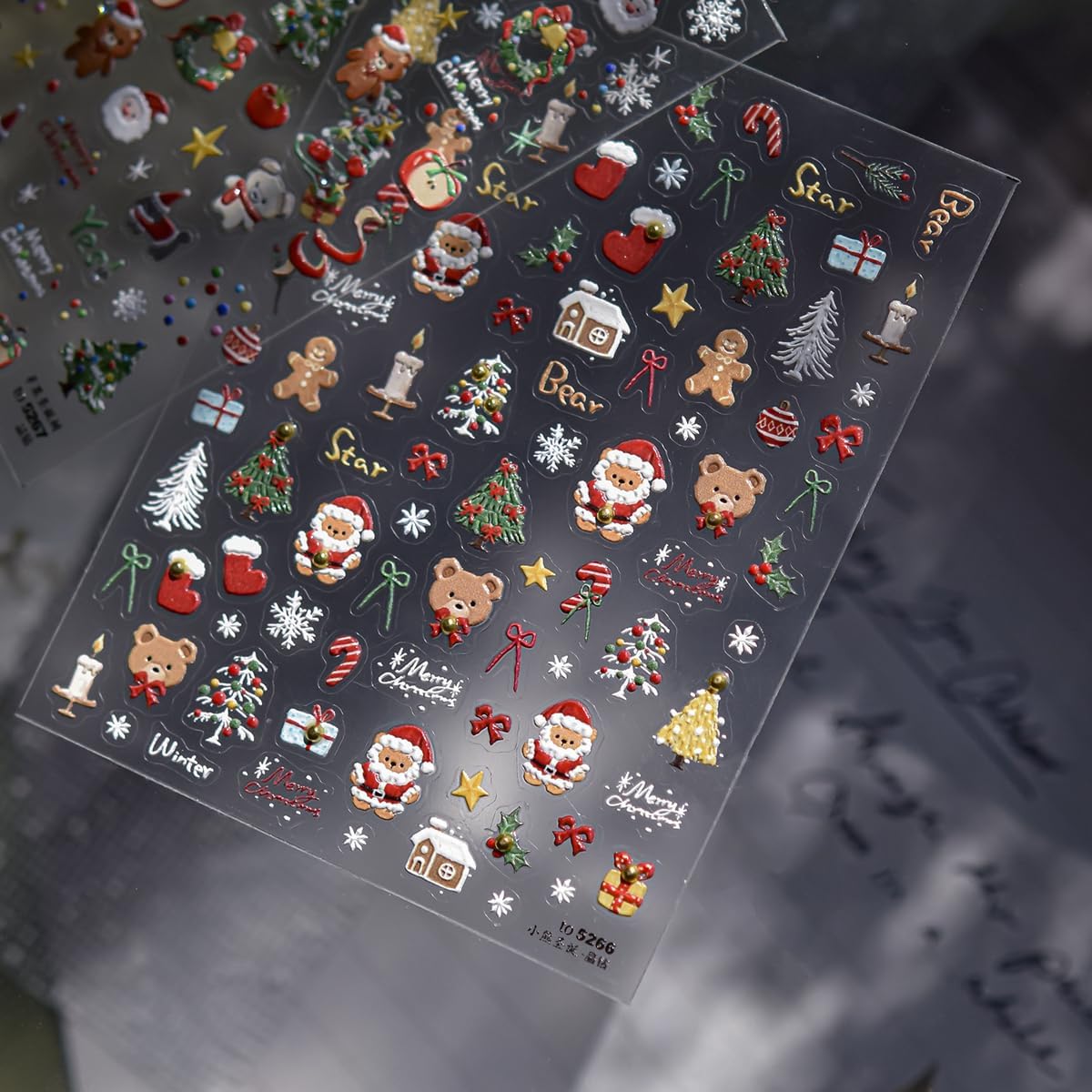 - Widely Used:Bear nail art decals.In addition to nail design,love manicure decoration nail stickers can also be used for rich DIY creation.You can decorate it in mobile phone shells, bags, pictures,cup,face and so on,it is full of fun,it is the feeling of Christmas.You will get multiple happy experiences with our decal stickers