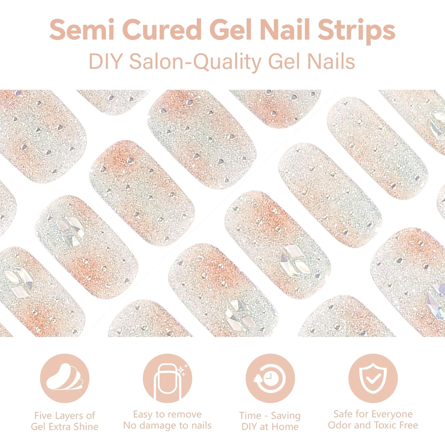 Semi Cured Gel Nail Strips-Salon Quality Semi-Cured Gel Press On Nails Stickers Quick DIY Nail Art Manicure Kits for Women at Home Works with Any UV/LED Lamps(Gilded Constellationďź