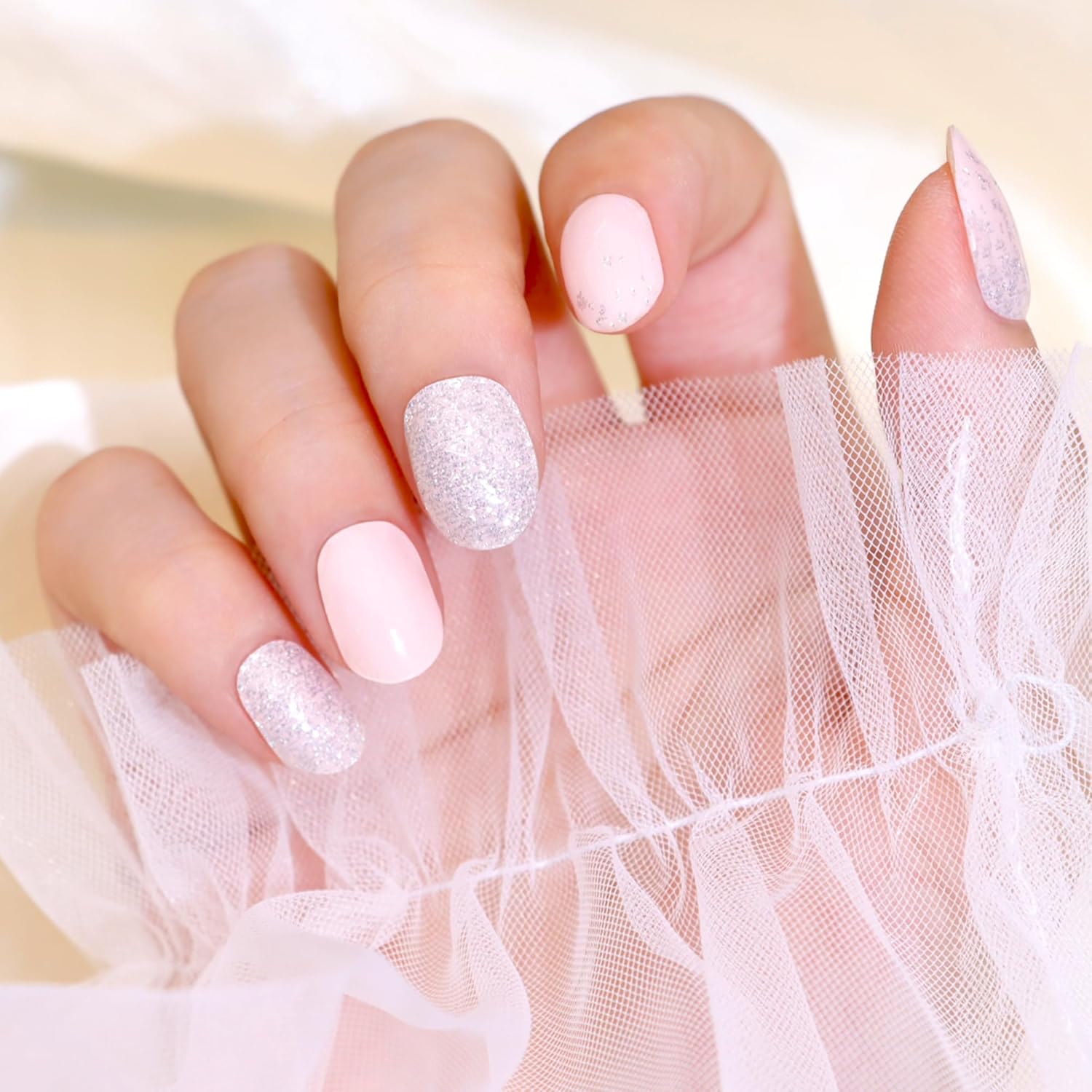 Semi Cured Gel Nail Strips-Travel friendly nail stickers portable manicure kit for vacations business trips easy to carry on the go,Works with Any UV/LED Lamps(Pixie Dust)