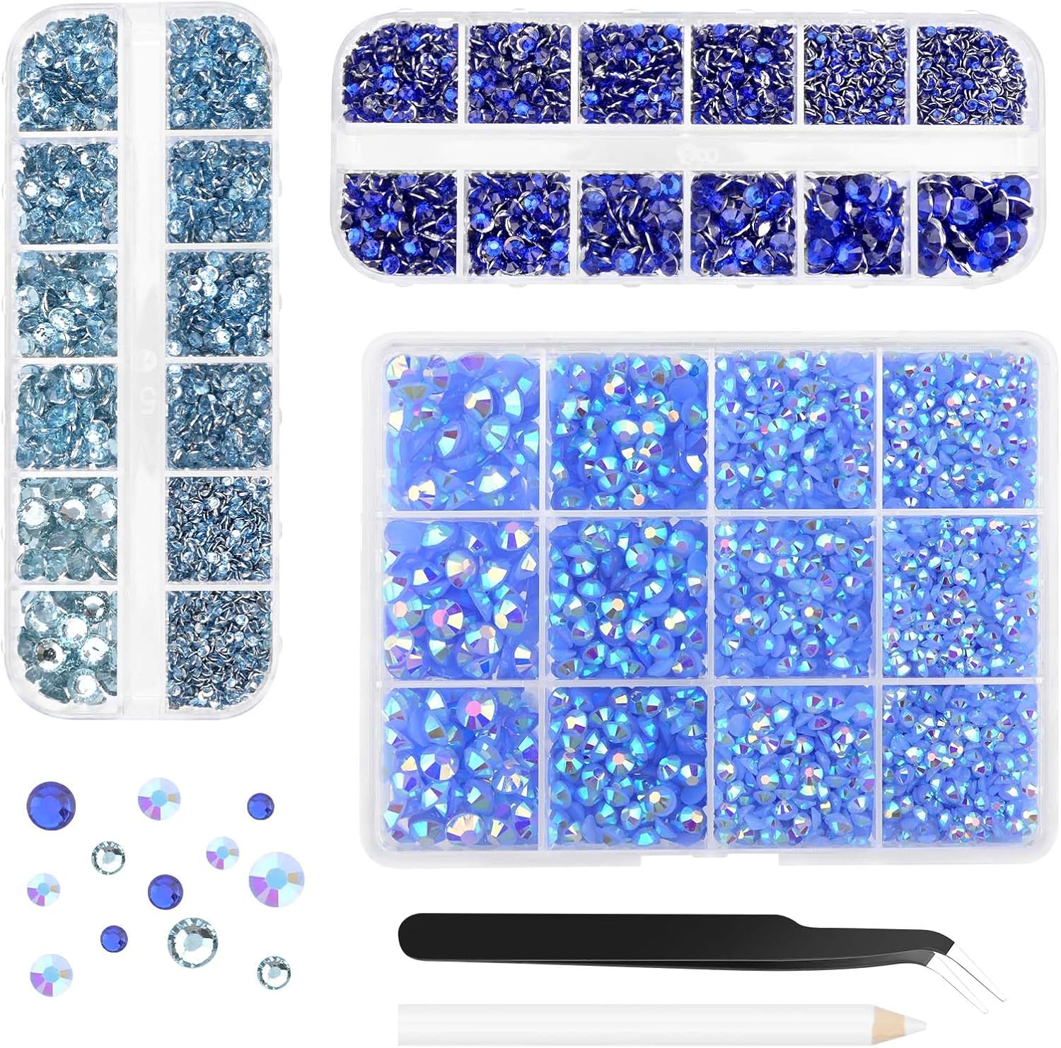 Morcheiong 17000Pcs Resin Rhinestones Blue Flatback Crystals Diamond Includes Tweezers and Pickup Pen Suitable for Crafting DIY Nail Art Makeup Wedding Dress Clothing Mug