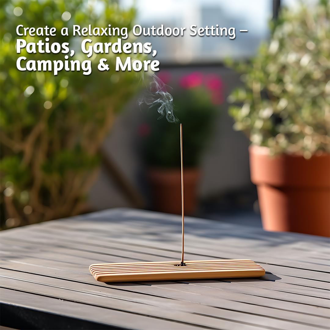 - Designed for Outdoor Spaces – These lemongrass & citronella incense sticks are a simple way to elevate the atmosphere on patios, decks, gardens, balconies, camping sites, or any open-air setting.
