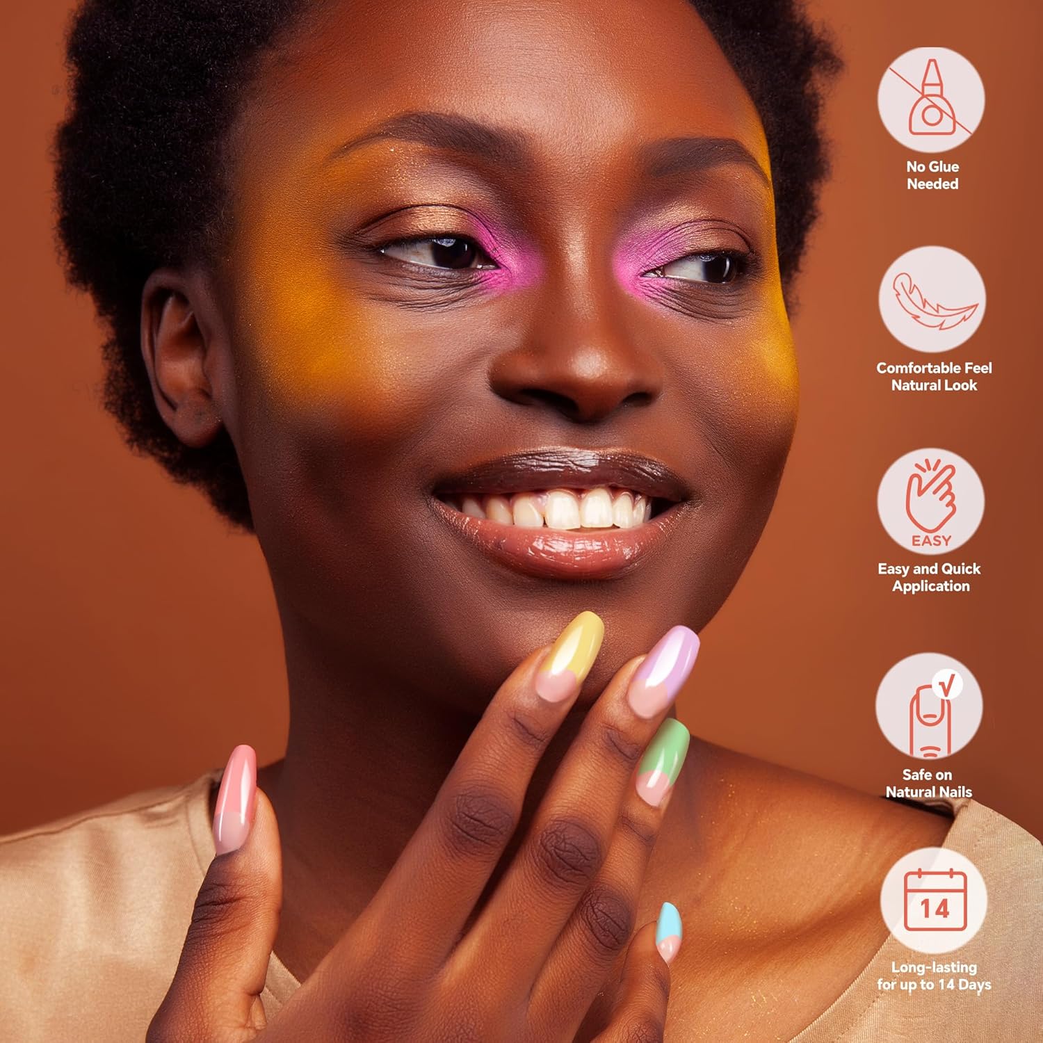Semi Cured Gel Nail Strips-Semi Cured Gel Nail Art Wraps Back to School Nail Stickers At-Home Manicure Kit,14 Days Wear, Salon-Grade Works with Any UV/LED Lamps(Colorful Spring)