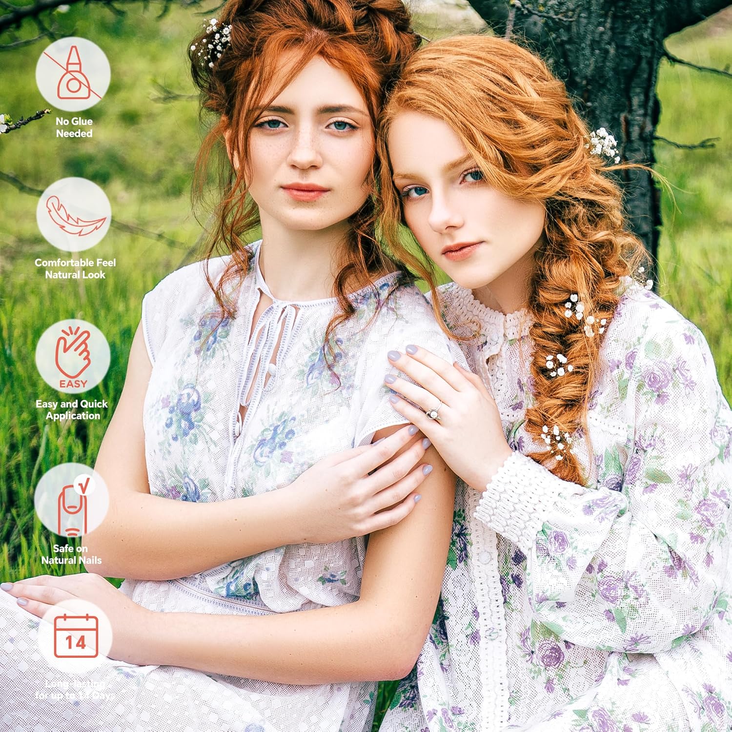 Semi Cured Gel Nail Strips-Salon Look Easy Peel Press On Nails Work Ready Manicure,Long Lasting Glossy Finish for Party/Date Night Crowd Works with Any UV/LED Lamps(Lavender)