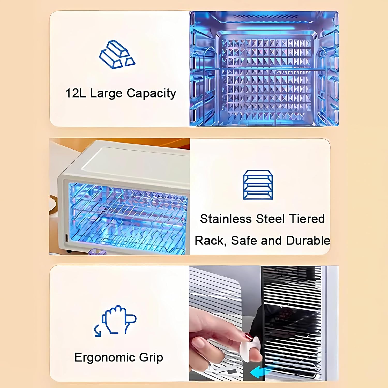 Dual Lamp UV Cabinet, 12L Storage with Stainless Steel Trays for Salon & Home Use, UV + Ozone Cleaning Organizer Large Capacity for Home Use, Barbers, Beauty Salons, and Spas
